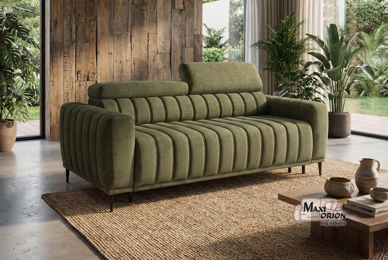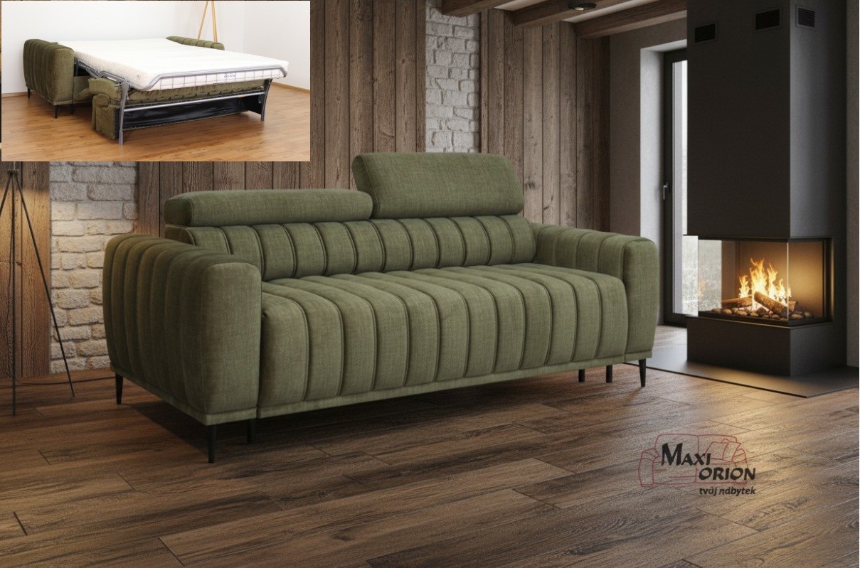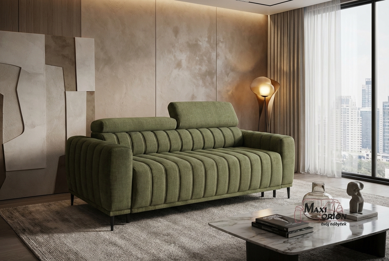 Moderní rozkládací pohovka s vertikálním prošíváním, komfortní pro sezení i každodenní spaní. S italským výsuvným mechanismem a opěrkami hlavy. Výběr z luxusních a odolných potahových látek. Ideální do malého bytu díky praktickému rozměru a multifunkčnímu využití.