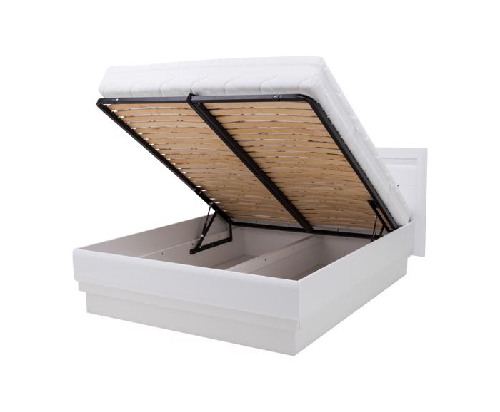 Postel 180 s kovovým roštem a úložným prostorem IRMA IM16, bílá/bílý lesk