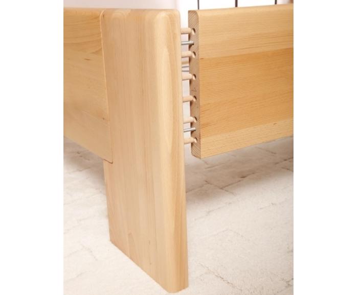 Elegantní provedení postele s robustním designem, celá postel je vyrobena z bukového masivu - průběžky, která působí celistvým dojmem dřeva. Postel se vyrábí ve zvýšené lehací ploše 50 cm (horní hrana bočnice) pro vaše pohodlné vstávání. Hrany na postranicích postele a čelech pro vaše pohodlí zakulaceny rádiusem R10, výška lehací plochy postele je 50 cm s moderním nastavitelným kováním pro nastavení výšky lehací plochy matrace. Celá postel je vyrobena z tloušťky 30 mm. Pevnost a stabilitu zajišťuje dvojice hlavních spojovacích šroubů a silných dřevěných kolíků. Postel nabízíme s matnou povrchovou úpravou přírodním olejem ze včelích vosků, čímž je 100% přírodní a je možné ošetřovat prostředky na dřevo.