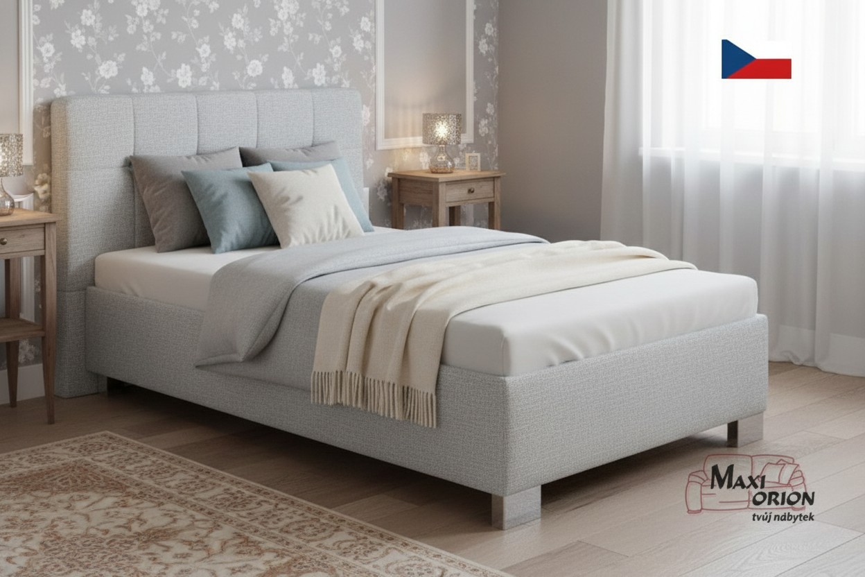- postel je očalouněna kvalitní sametově hladkou látkou Enjoy odstín světle šedá