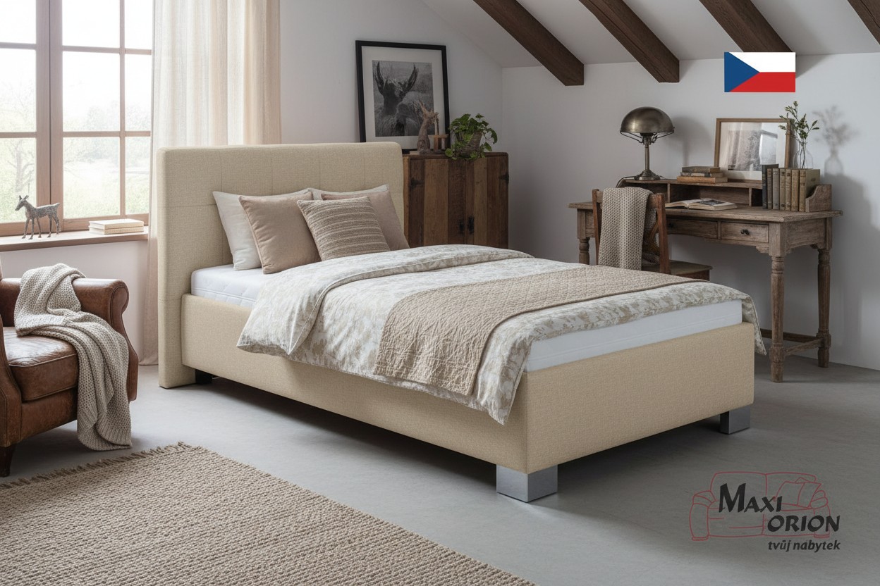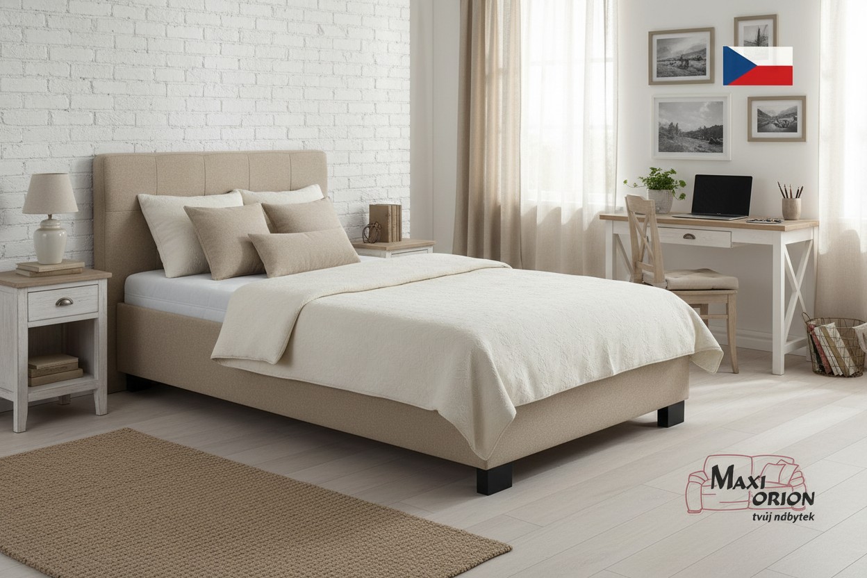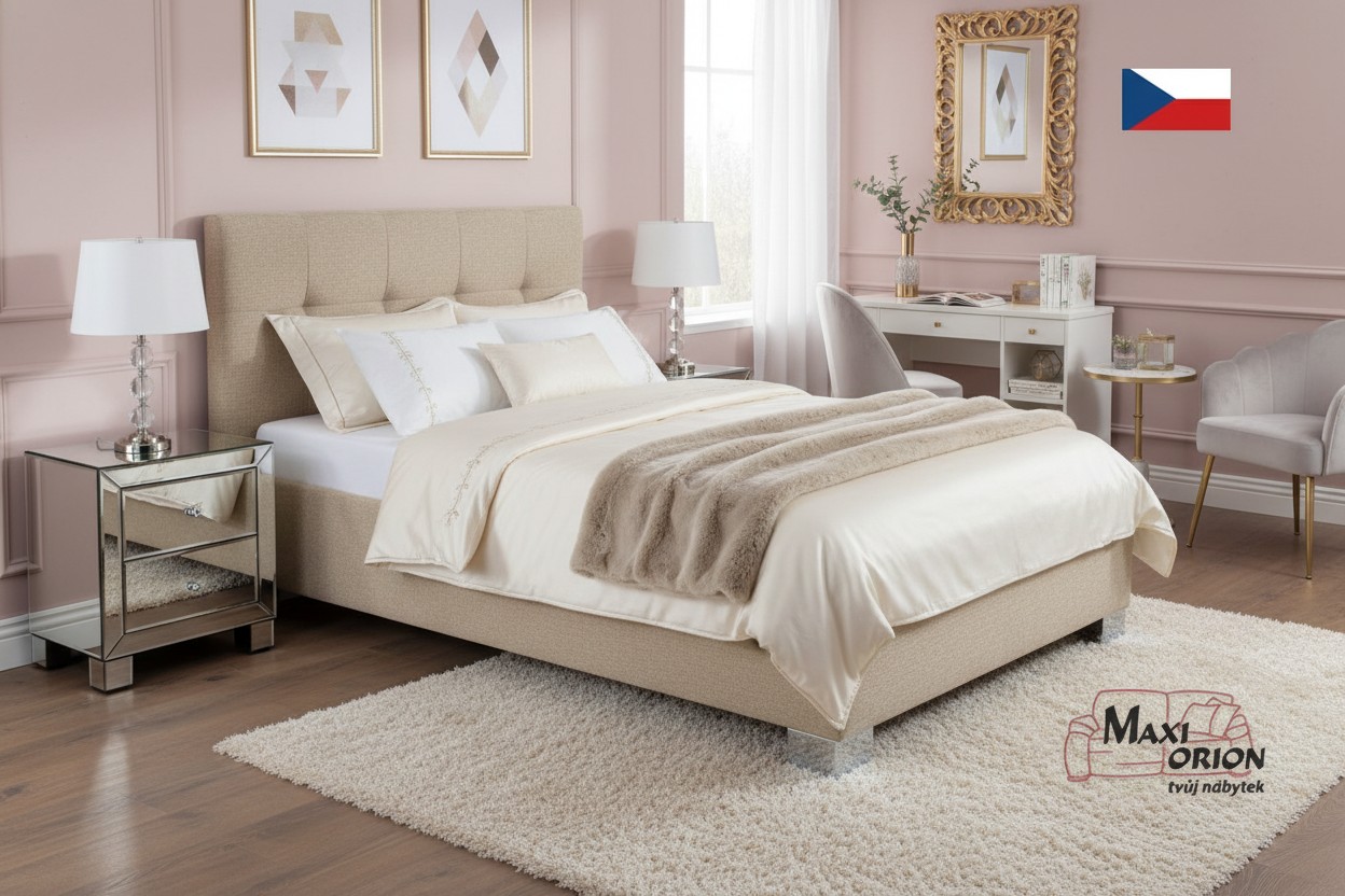 - postel je očalouněna kvalitní sametově hladkou látkou Enjoy odstín Beige - béžová