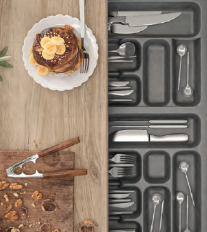 Příborníky jsou navrženy tak, aby maximálně využily prostor vaší kuchyňské zásuvky a zároveň zachovaly elegantní, čistý vzhled. Díky promyšlenému členění přihrádek snadno oddělíte různé typy příborů a udržíte si ve vaření přehled a rytmus.