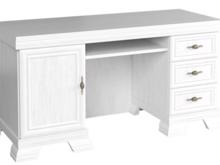 Psací stůl KB má vlevo skříňku s poličkou, vpravo tři zásuvky a uprostřed výsuv na klávesnici. Výrazná jsou jeho profilovaná dvířka a přední plochy zásuvek. Originální ozdobné úchytky jsou z kovu. Psací stůl je vyrobený z kvalitního LTD a MDF v dekoru sosna andersen.
