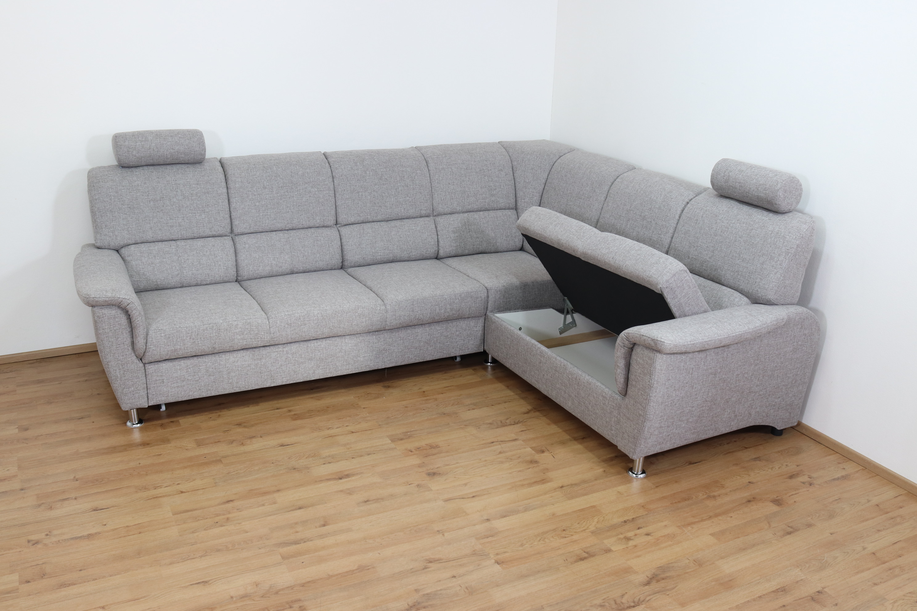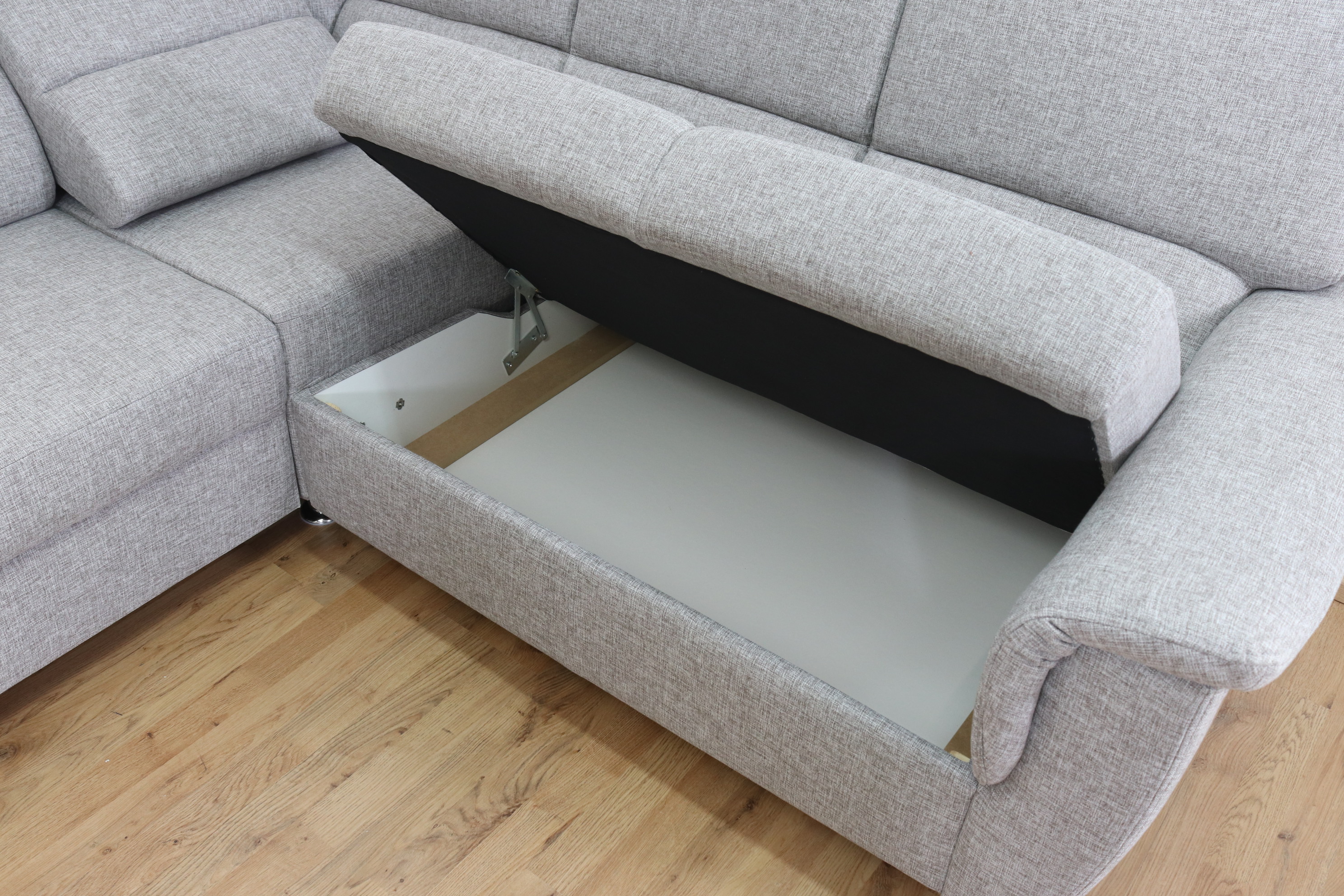 Rohová rozkládací sedací souprava s úložným prostorem a posuvnou funkcí relax Demo pravá - Světle šedá