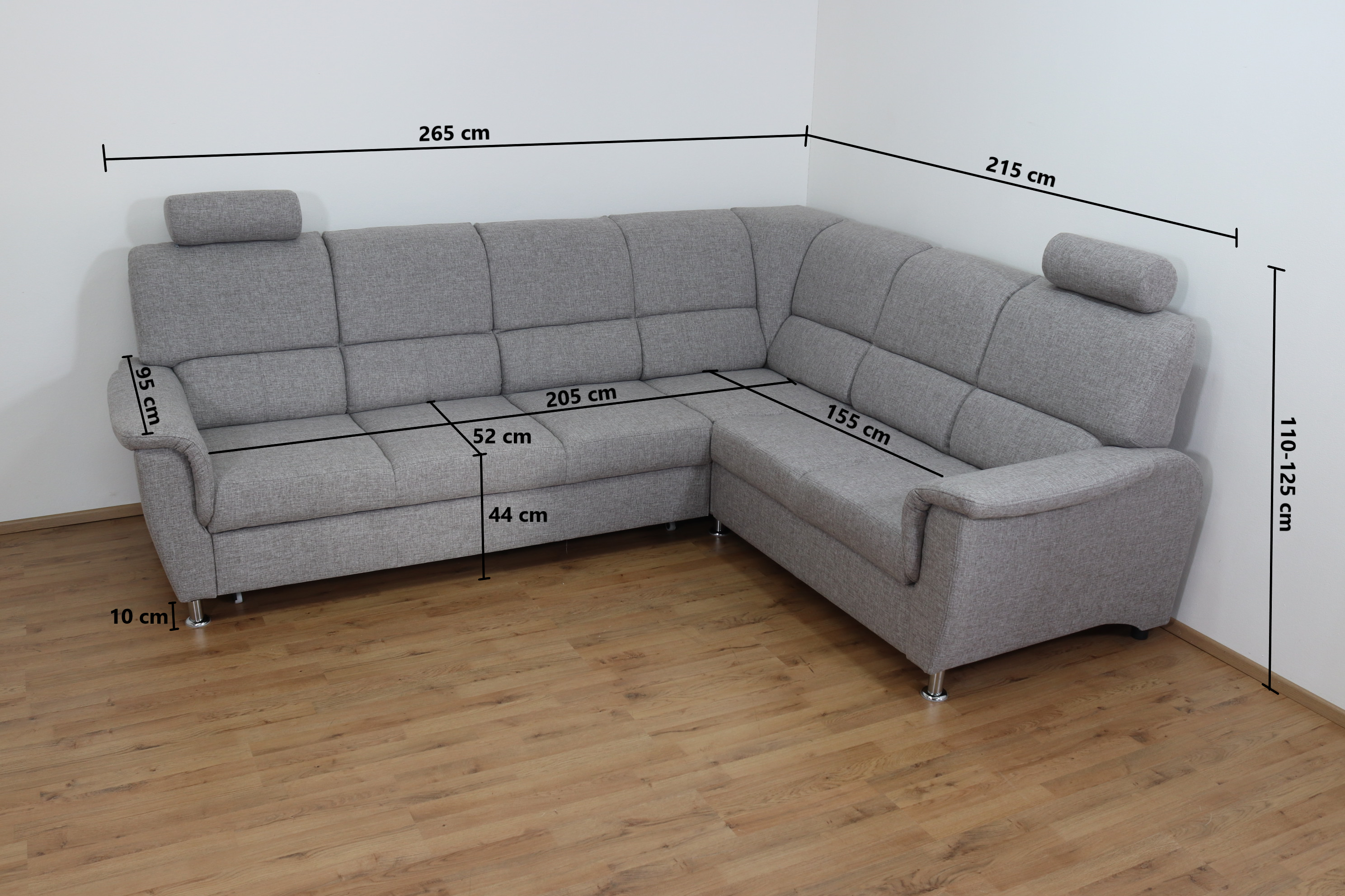 Představujeme Vám moderní rohovou rozkládací sedací soupravu Demo ve světle šedém provedení. Sedací souprava je čalouněná kvalitní látkou Afryka 722, která dodává sedačce jemný a nadčasový vzhled, zatímco polohovatelné záhlavníky a posuvná funkce relax se postarají o maximální komfort při odpočinku. Souprava je vyrobena z PUR pěny a vlnitých pružin. Díky praktickému úložnému prostoru budete mít vše po ruce a po rozložení získáte pohodlnou lehací plochu o rozměru 203 × 118 cm. Elegantní Vysoké kovové stříbrné nožky ji sladí s jakýmkoli interiérem.