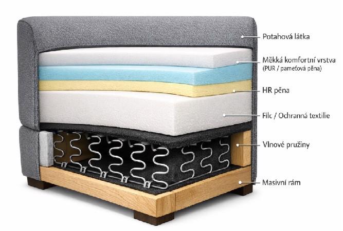 Rohová sedací souprav Aviro šedá HR pěna - provedení