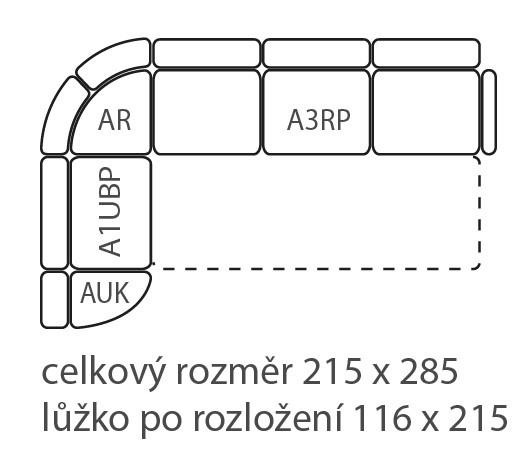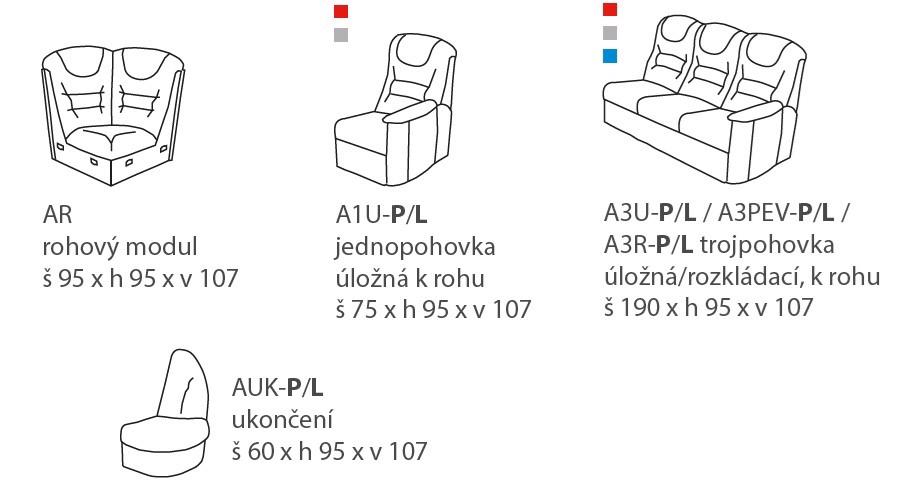 - AR značí rohový modul (š 95 x h 95 x v 107 cm).