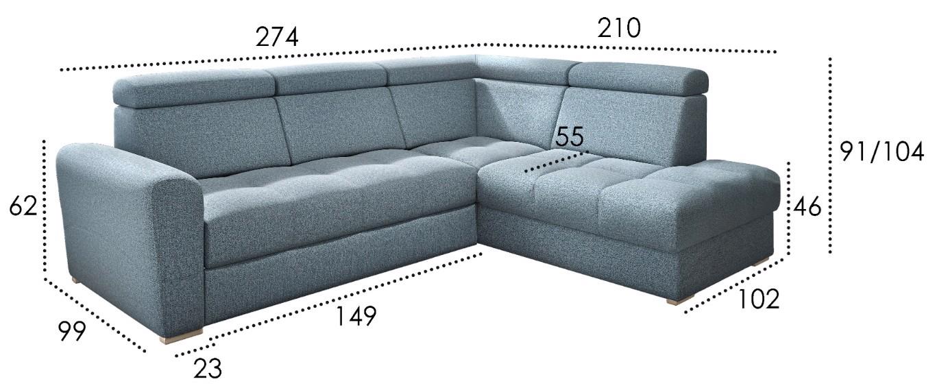 Rozměry sedací soupravy jsou orientační s tolerancí ±5 cm, protože použitá pěna a materiály se při výrobě i běžném používání mohou mírně uvolnit či sednout. V případě potřeby je vždy možné s prodejcem domluvit maximální šíři soupravy.