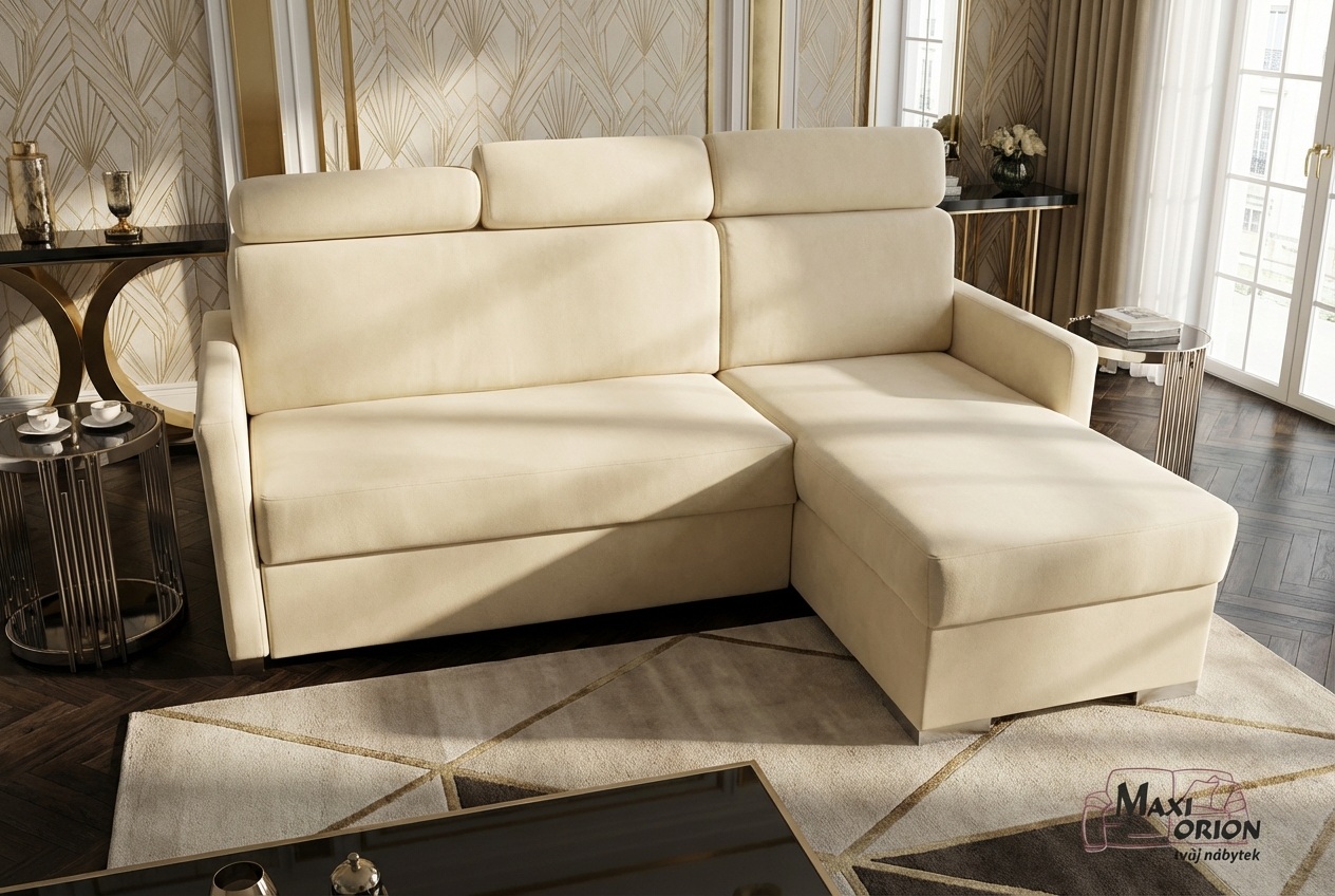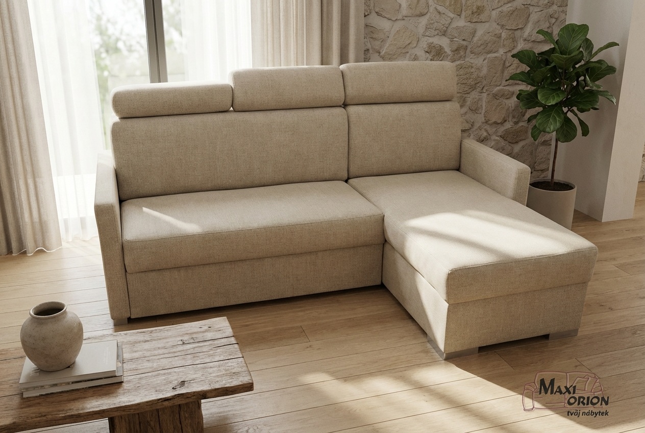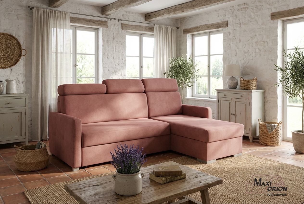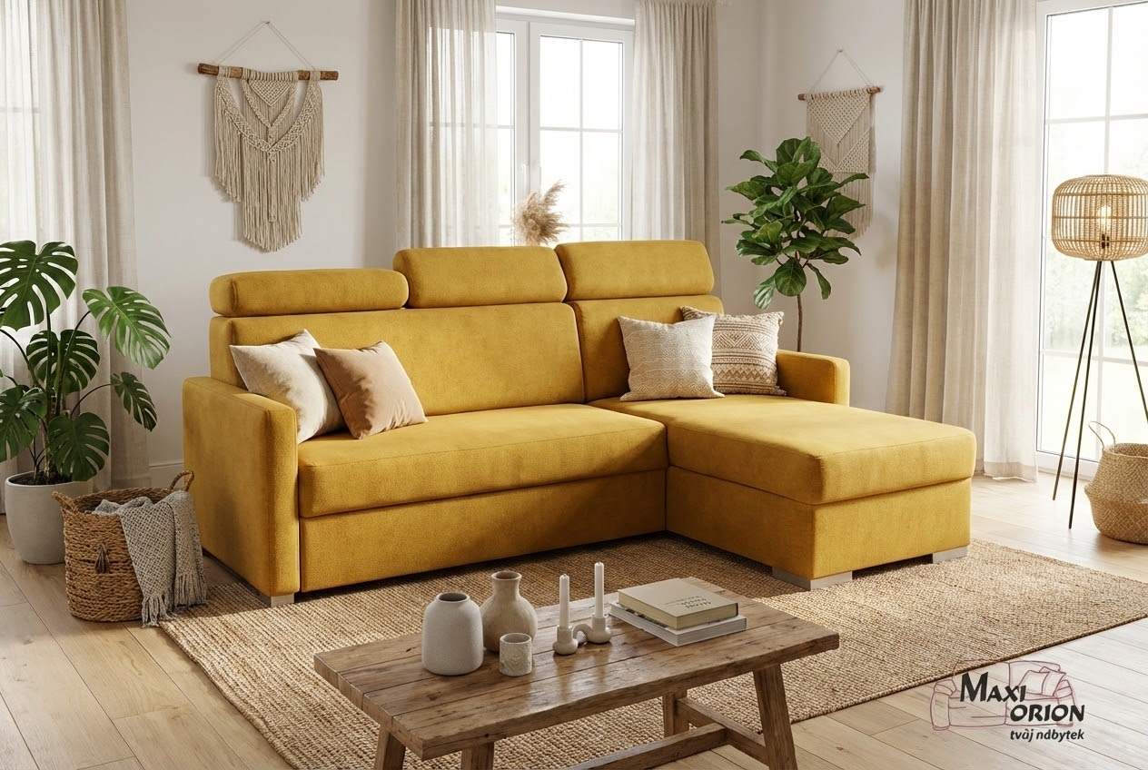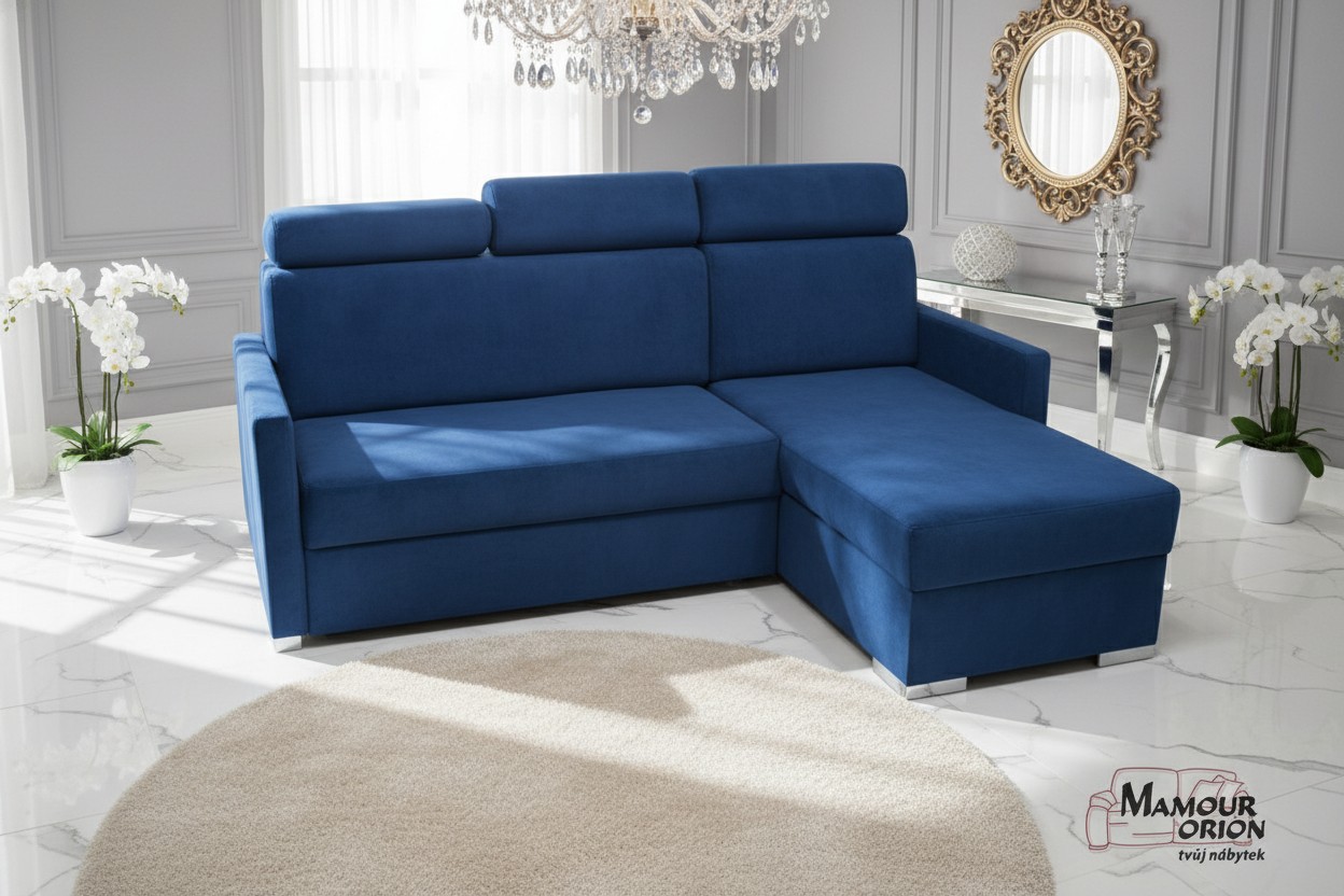 Rohová sedací souprava Hugo mini do tvaru L je ideální volbou do menších interiérů, kde chytře využije každý centimetr prostoru bez kompromisů v pohodlí. Moderní rohové provedení kombinuje elegantní vzhled s praktickými funkcemi, jako je rozklad pro příležitostné spaní a praktický úložný prostor. Sedací souprava je univerzální – montáž je možná do levého i pravého rohu, takže ji dokonale přizpůsobíte Vašemu prostoru.