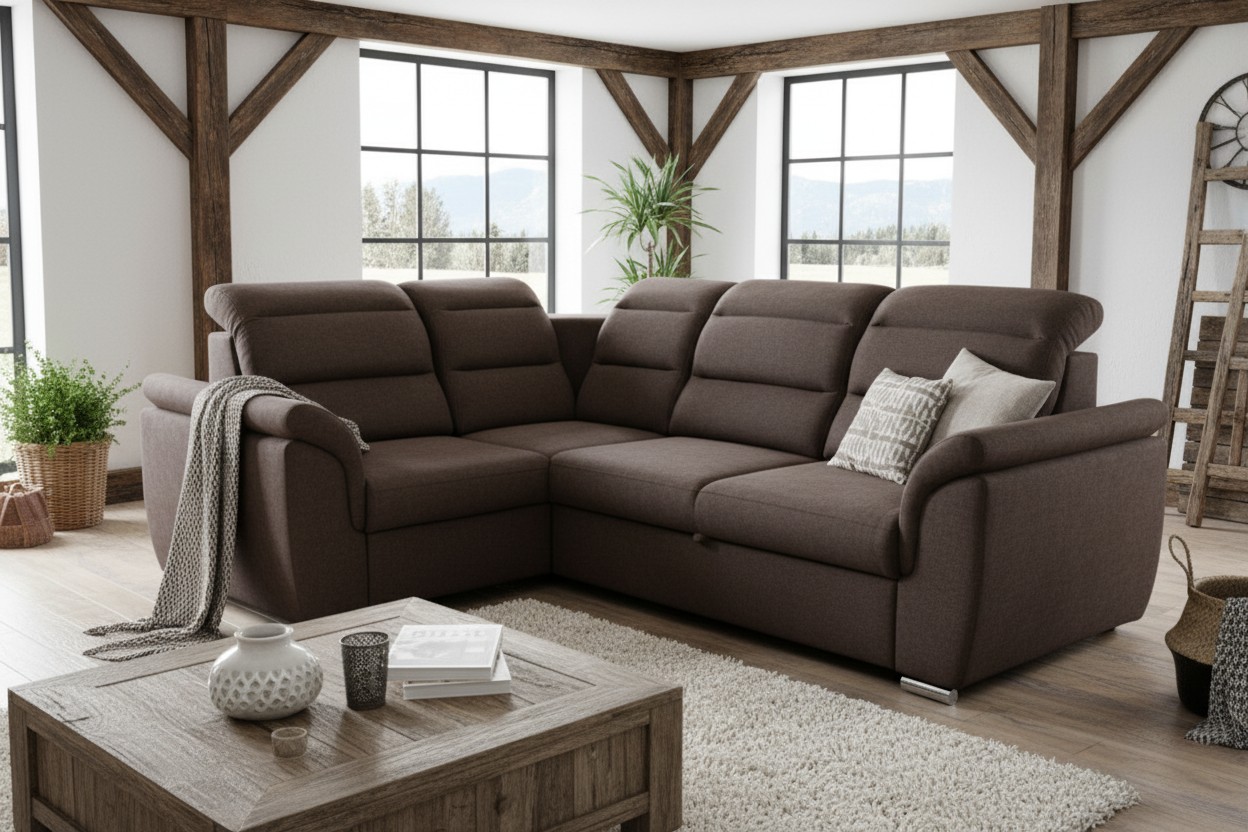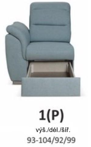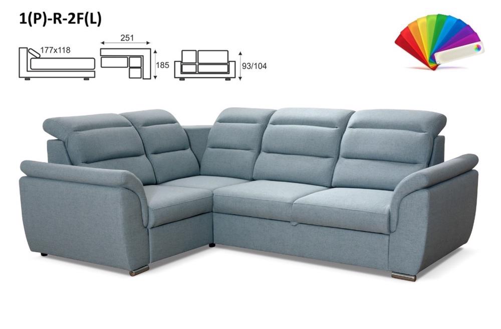 Kompletní sestava obsahuje: • Dvojsedák s rozkladem 2F na příležitostné spaní - typ rozkladu "delfín" • Jednosedák s úložným prostorem - praktické řešení pro ukládání • Spojovací roh - poskytuje komfortní oporu zad