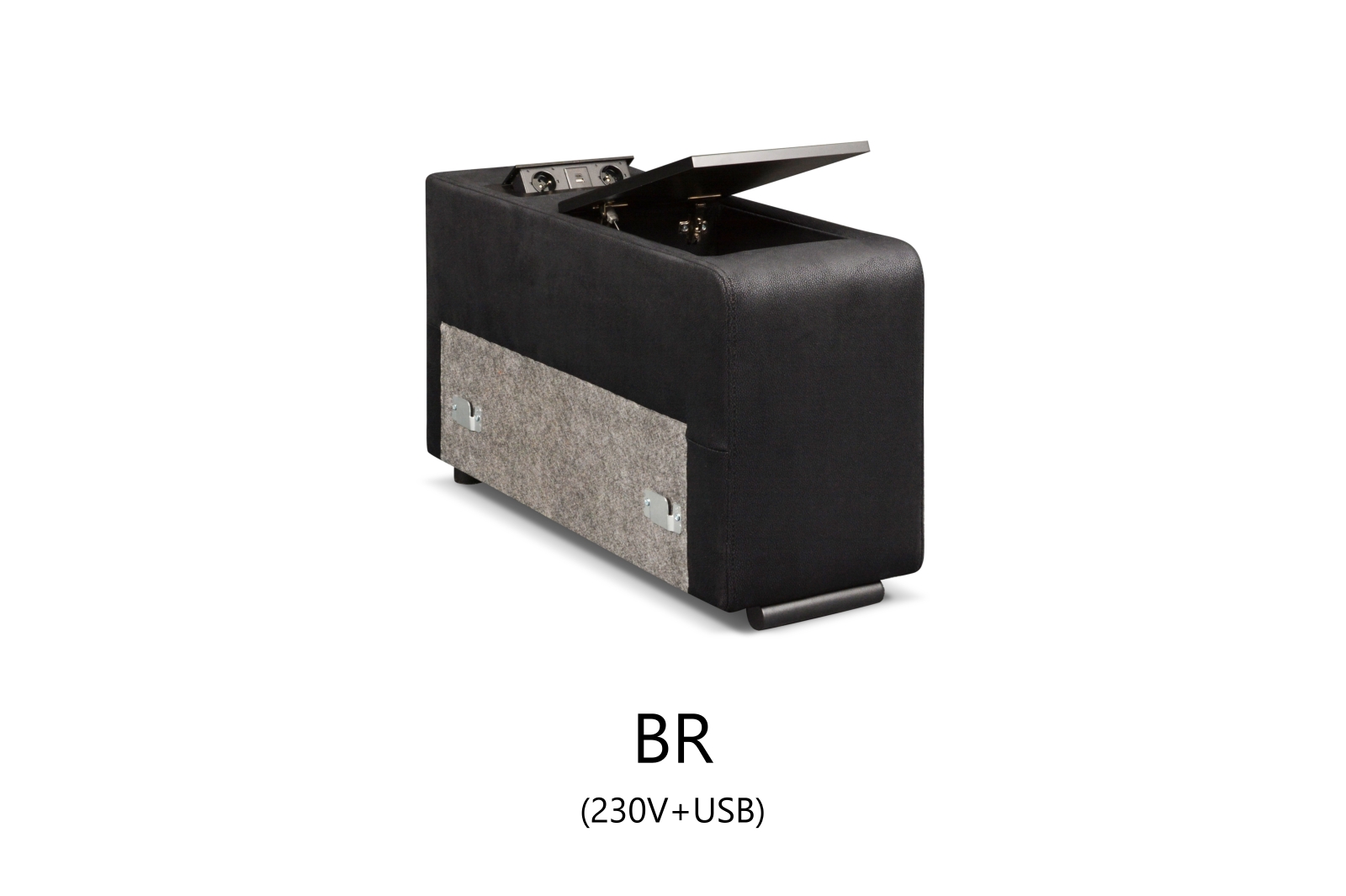 Součástí sedací soupravy Kanton je také elegantně integrovaný bar, který dodává celé sestavě praktický i moderní prvek. Bar je vybaven deskou, kterou lze využít jako malý stolek na odložení nápojů, telefonu nebo notebooku. V jeho části se nachází 2x zásuvky 230 V, 1x USB-C port a 1x USB port, takže si můžete snadno nabít elektroniku nebo připojit drobná zařízení, aniž byste museli vstávat ze sedačky.