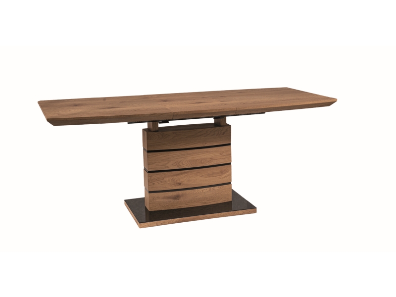 Rozkládací jídelní stůl Leonardo je vyroben v moderním a elegantním designu. Imitace dubu vnese do interiéru útulnou atmosféru a pocit pohodlí. Je vyroben v kombinaci MDF materiálu a skla použitého na noze stolu. Praktická funkce rozkladu nabízí dostatek prostoru i pro více strávníků.