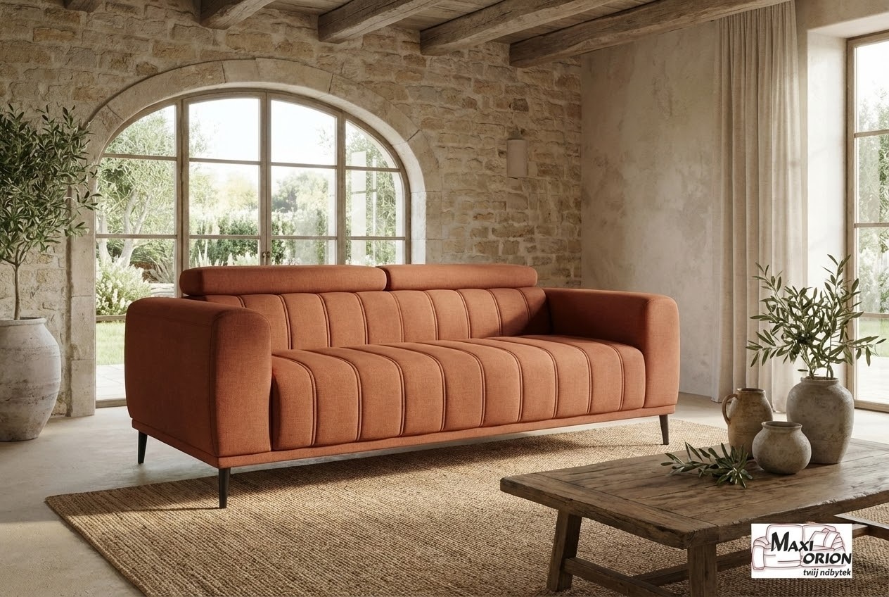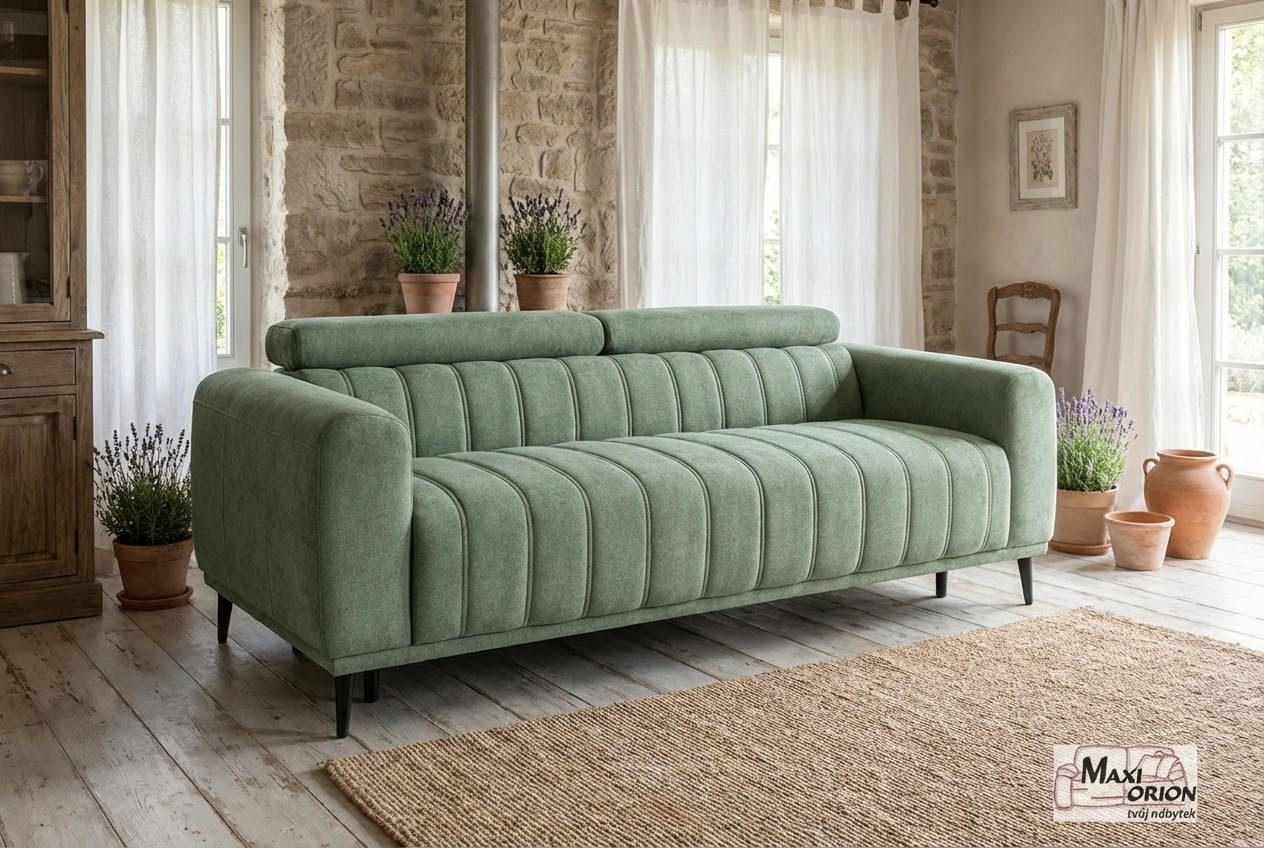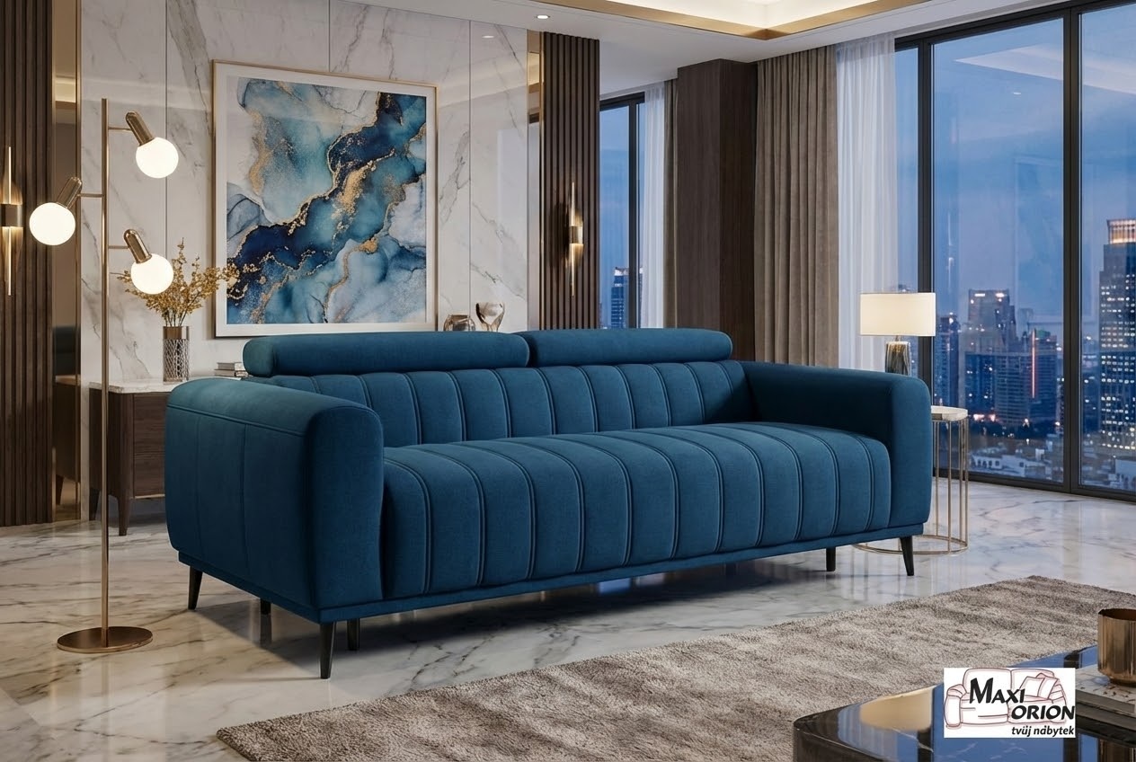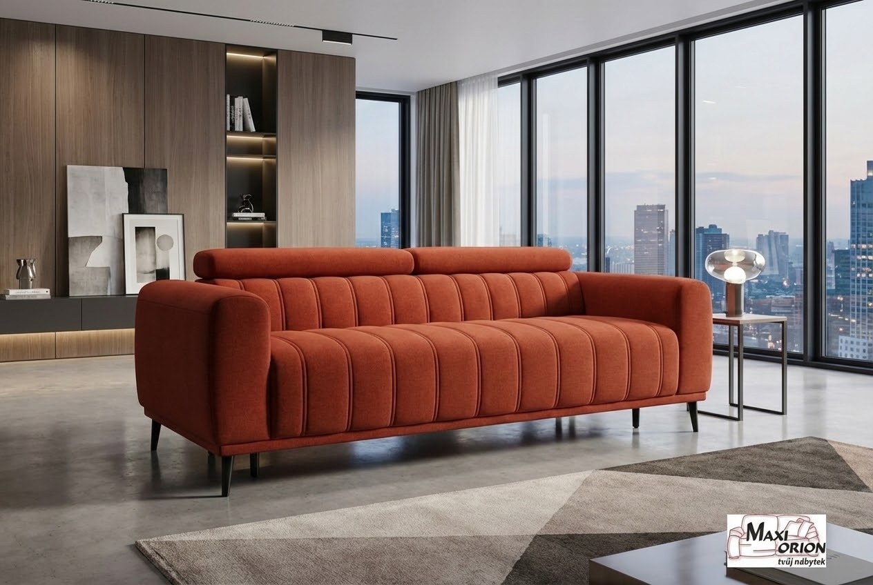 Moderní rozkládací pohovka s vertikálním prošíváním, komfortní pro sezení i každodenní spaní. S italským výsuvným mechanismem a opěrkami hlavy. Výběr z luxusních a odolných potahových látek. Ideální do malého bytu díky praktickému rozměru a multifunkčnímu využití.
