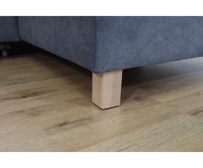 Sedací souprava Lima je osazena 9 cm vysokými dřevěnými nožkami v odstínu buku. Jejich výška umožňuje snadný přístup při úklidu, včetně použití robotického vysavače, a zároveň přispívá k vzdušnému vzhledu celé pohovky.
