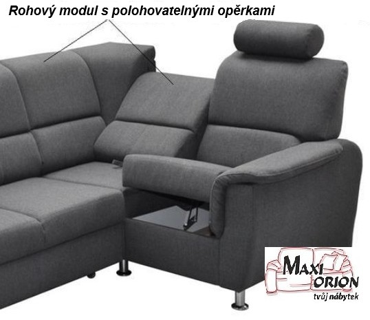 - spojení modulů zajišťuje rohový modul, který nejen spojí oba moduly, ale zároveň dodá sedací soupravě eleganci