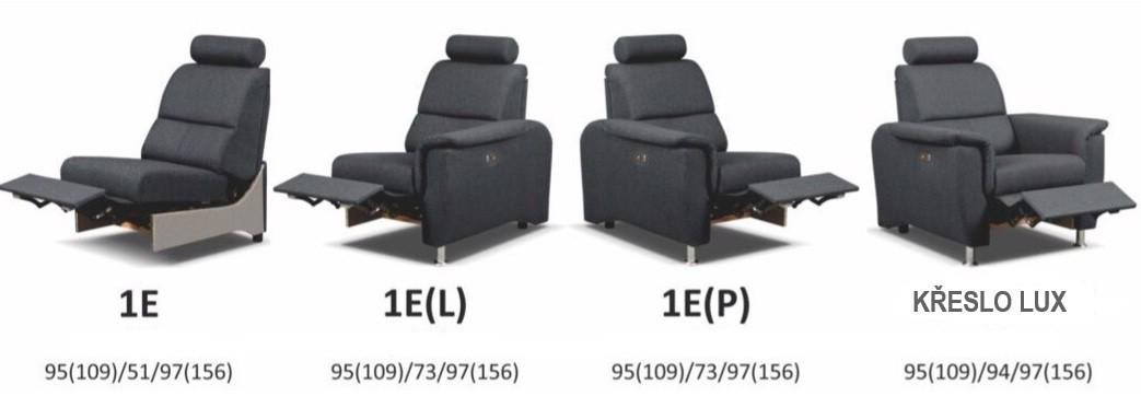 • Opěrky hlavy a polohovatelný roh s funkcí RELAX, dále elektrické křeslo LUX – ideální opora hlavy, krku i zad, ať už při sledování televize nebo čtení.