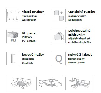 • Modulární design umožňuje různé konfigurace – sestavte si sedací soupravu přesně podle svých představ.