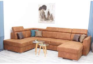 Moderní a pohodlná sedací souprava Exclusive s funkcí spaní a úložným prostorem pro lůžkoviny. Má kvalitní pružinovou výplň Faliste, která zajišťuje komfortní sezení. Sedáky jsou vyplněny kvalitní elastickou pěnou. Sedací souprava má polohovatelné opěrky hlavy a pochromované dekorativní prvky.