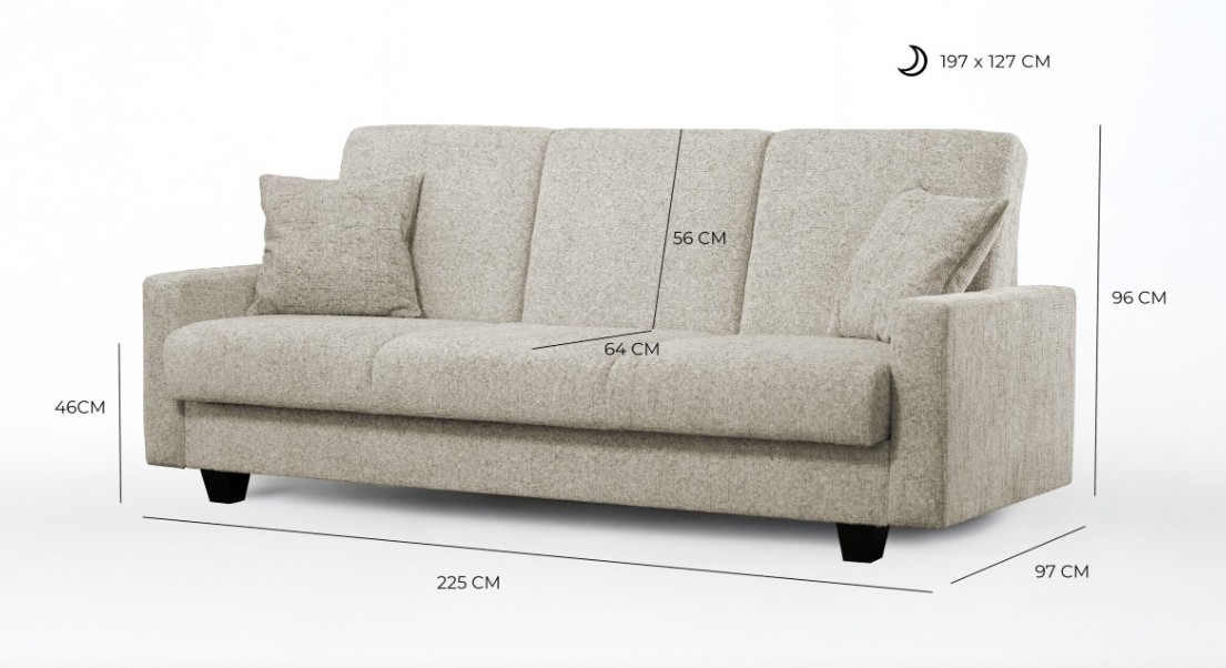 - 3R pohovka: š. 225 × hl. 97 × v. 96 cm