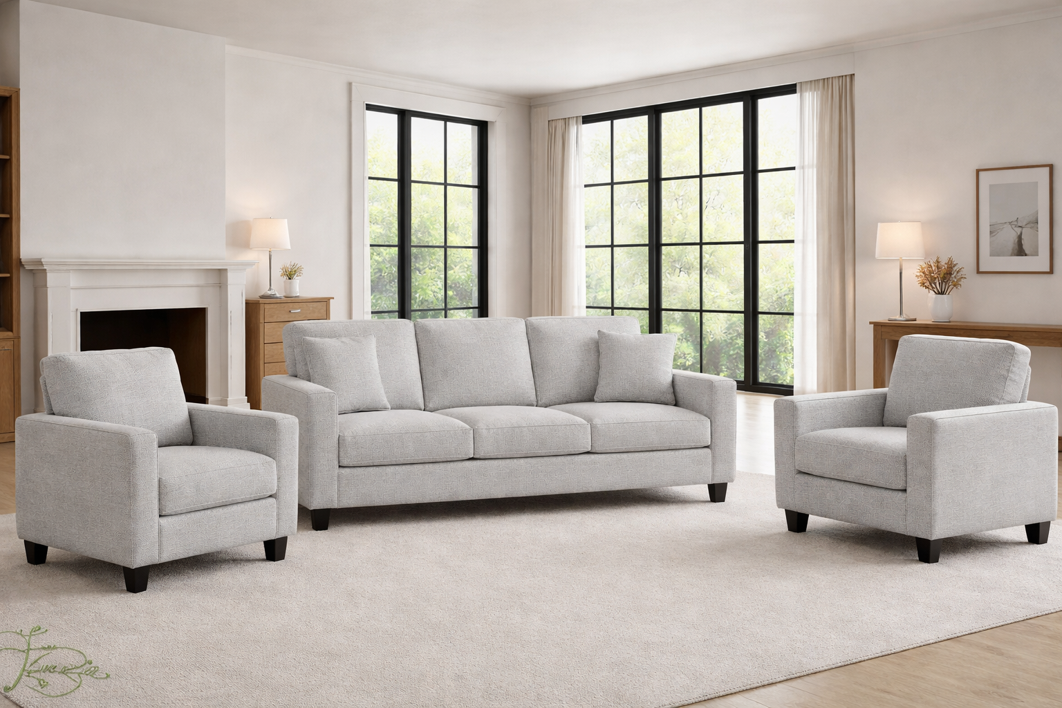 Sedací souprava Harmonie je očalouněna kvalitní potahovou látkou Diosa 16, která v sobě spojuje moderní vzhled, vysokou odolnost a snadnou údržbu. Elegantní šedý odstín s jemným melírem působí nadčasově a snadno se kombinuje s moderním i klasickým interiérem.
