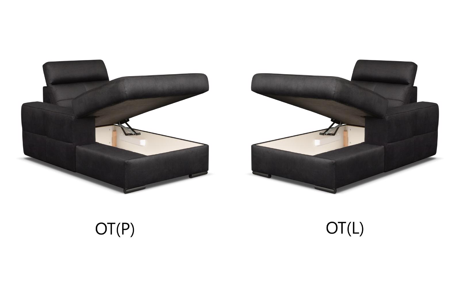 Sedací souprava Kanton nabízí dva praktické úložné prostory, které pomáhají udržet pořádek v obýváku. Velký úložný prostor je umístěn v otomanu a pohodlně pojme deky, polštáře nebo sezónní věci. Druhý, menší prostor je řešen jako výsuvný šuplík, ideální pro uložení drobností, které chcete mít po ruce. Otevírání je snadné a plynulé, takže přístup k uloženým věcem je vždy rychlý a pohodlný.