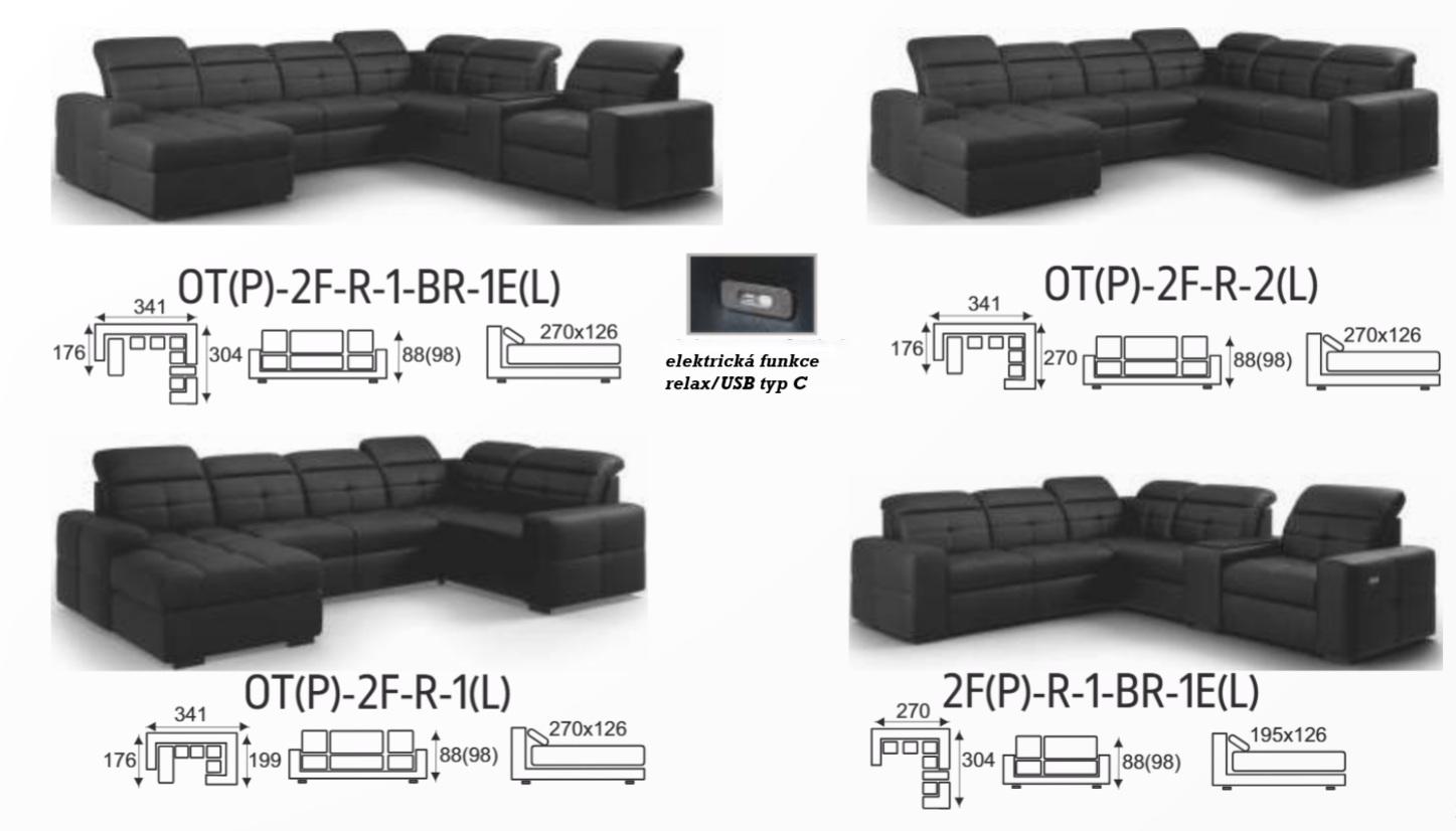 - Tvar: rohová L (levá/pravá), U, 3-sed/2-sed/křeslo
