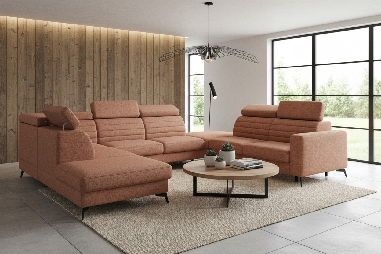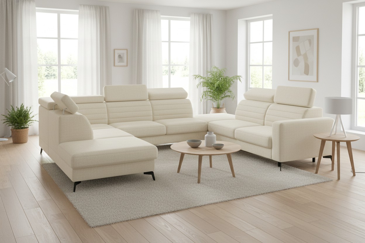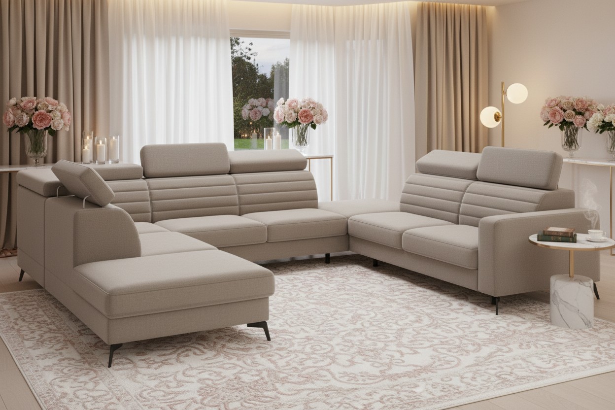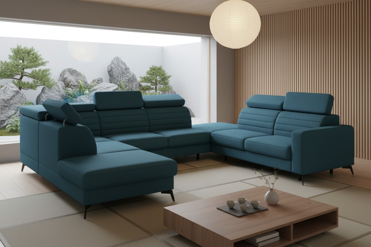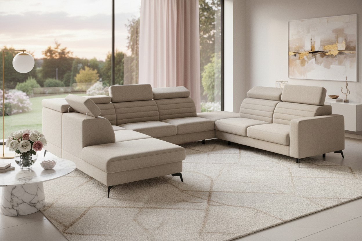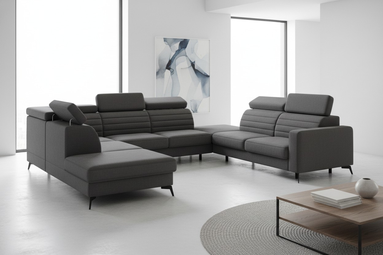 Modernost to vystihuje velkou rohovou sedací soupravu Madeiru, která nabízí kvalitní a pohodlné sezení s polohovatelnými opěrkami hlavy. Madeira zaujme na první pohled a zároveň nabízí maximální pohodlí. Díky rozkládacímu mechanismu a prostornému úložnému prostoru se snadno stane centrem Vašeho domova – ideální pro každodenní relax i příležitostné přespání.