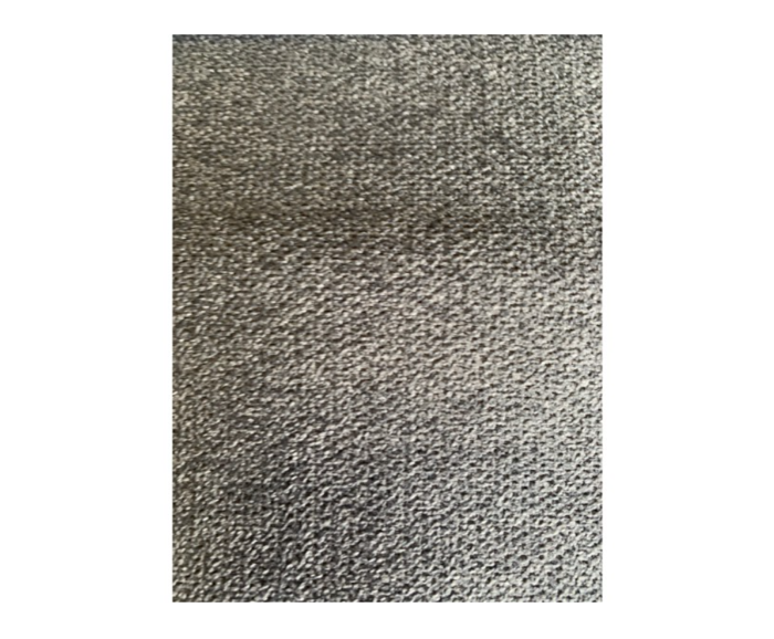 Sedačka je potažena tmavě šedou látkou s výrazným bílým prošitím, velmi příjemnou na dotek.