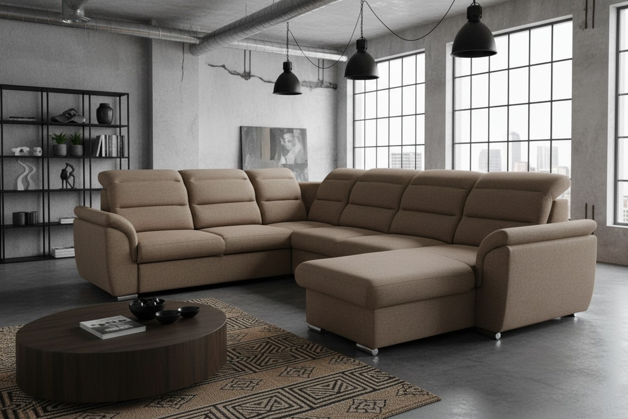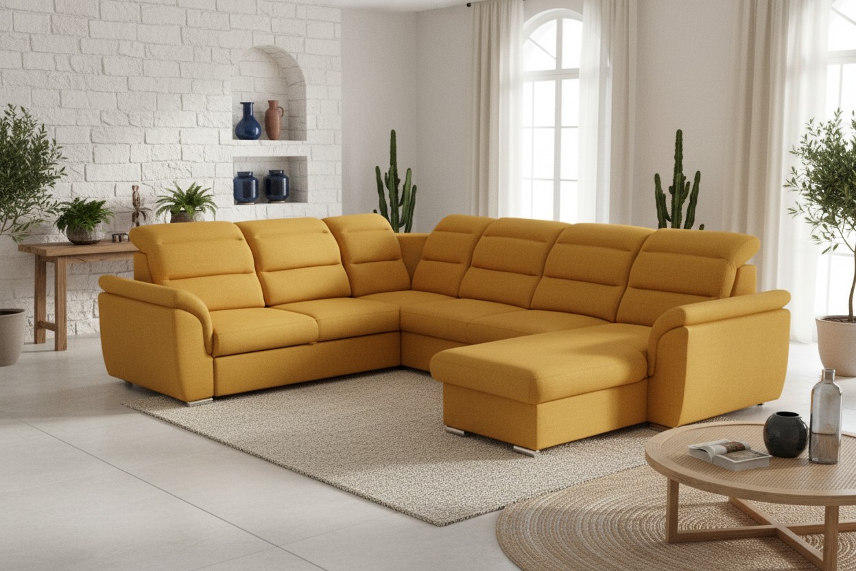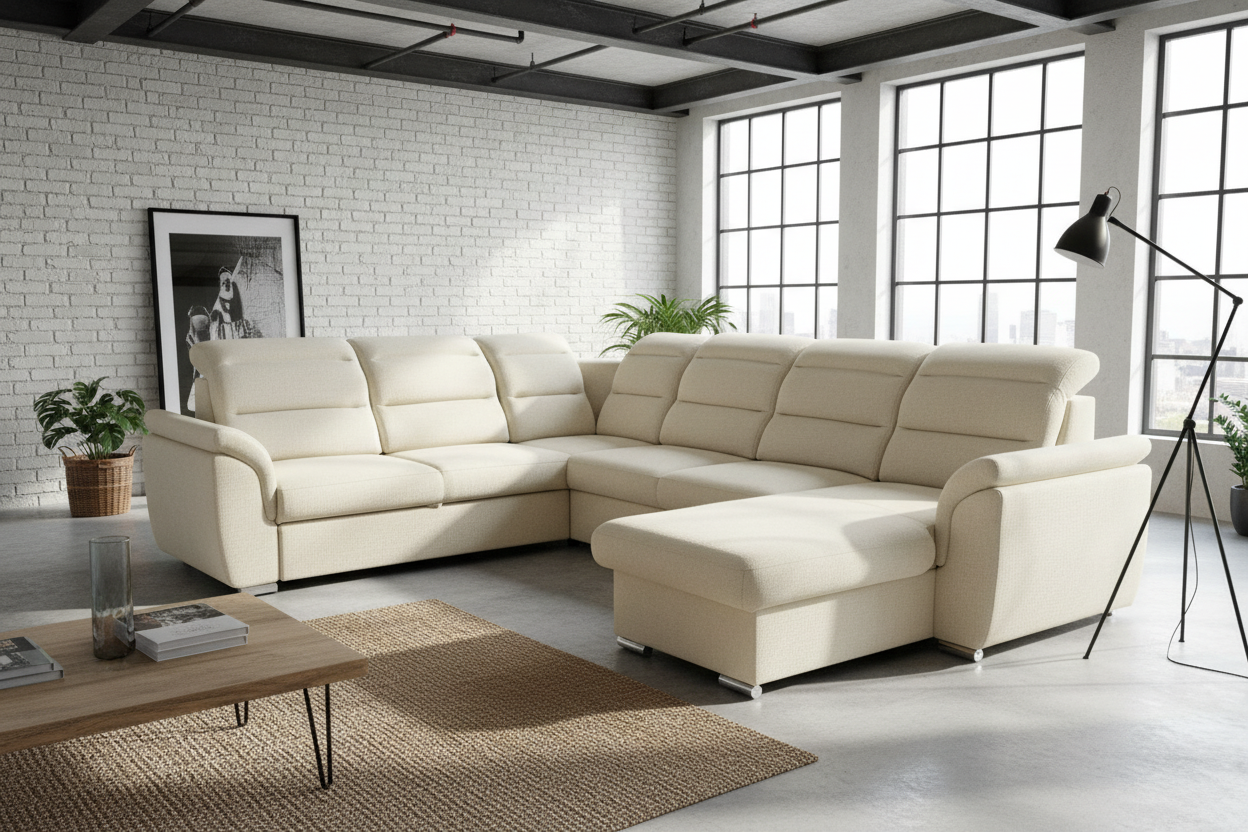 Moderní a elegantní rozkládací sedací souprava Medium nabízí vysoký komfort a praktický úložný prostor, který oceníte při každodenním používání. Díky svému designu se snadno stane oblíbeným centrem vašeho obývacího pokoje.
