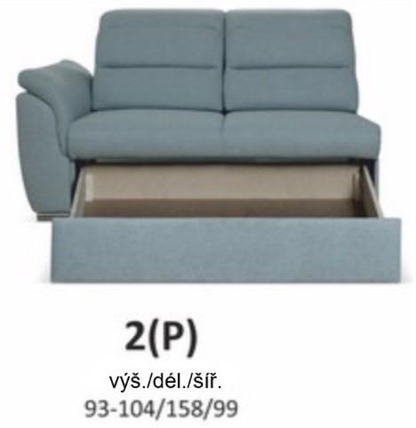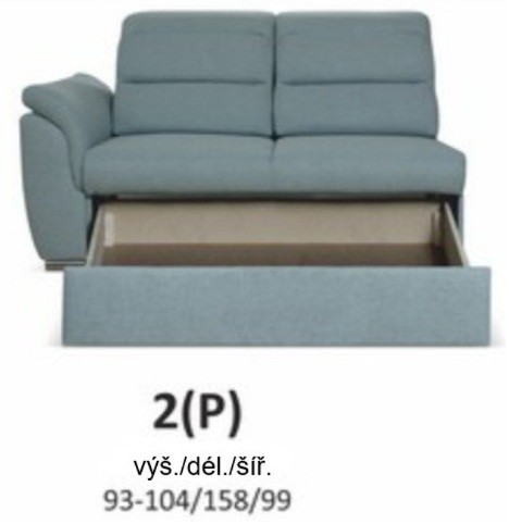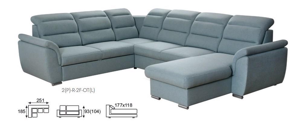 Kompletní sestava obsahuje: • Dvojsedák s rozkladem 2F na příležitostné spaní - typ rozkladu "delfín" • Dvojsedák (P) s úložným prostorem - praktické řešení pro ukládání • Spojovací roh - poskytuje komfortní oporu zad • Otoman - zajistí pohodlný odpočinek a nabízí velký úložný prostor