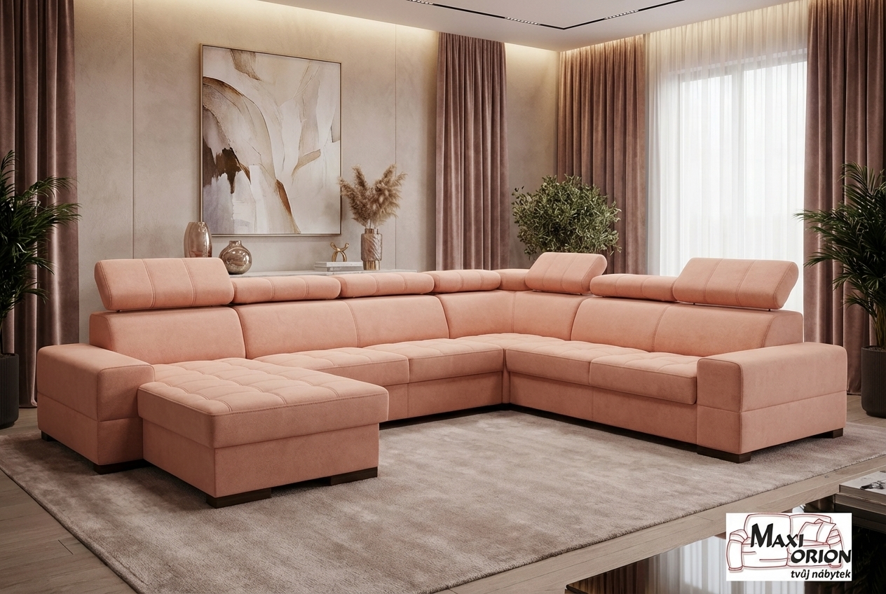 Luxusní sedací souprava Metrix V nabízí komfort, variabilitu a moderní design. Je rozkládací, vybavená dvěma úložnými prostory a polohovatelnými záhlavníky. Pohodlné sezení zajišťují vlnité pružiny v kombinaci s kvalitní HR pěnou.