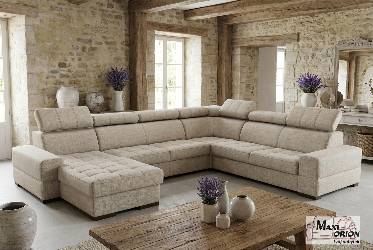 Vyobrazený nábytek, dekorace a polštáře nejsou součástí sedací soupravy.