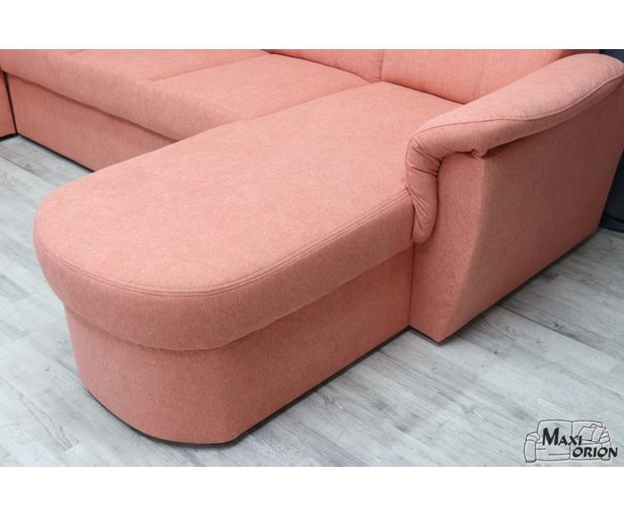 Moderní a elegantní rozkládací sedací souprava Moderna tvar U má úložný prostor a také rozklad, který slouží k občasnému přespání, kdy po jeho rozložení vznikne spací plocha. Je zde možnost polohovat rohové části opěráku. Vysoký opěrák zajistí stabilní opěru pro záda.