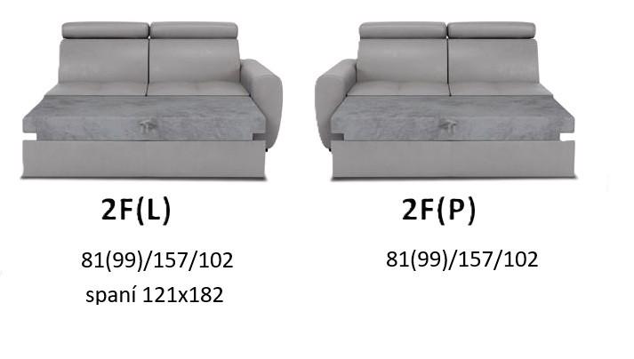 - Moduly rozkládací: Typu Delfín je po rozložení rozměr spaní 121 x 182 cm k tomuto rozměru přičtěte rozměry postranních sedáků. Šířka rozkládacího rohového modelu UPNP bez područky je 170 cm, područka 24 cm. Šířka ukončovacího modulu D je 58 cm. Šířka středového rozkládacího modulu 2F je 133 cm.