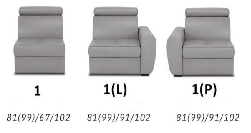 - Dalším modulem je jednosedák s úložným prostorem 1 šíře je 67 cm a 1 (L+P) s područkou šíře je 91cm.