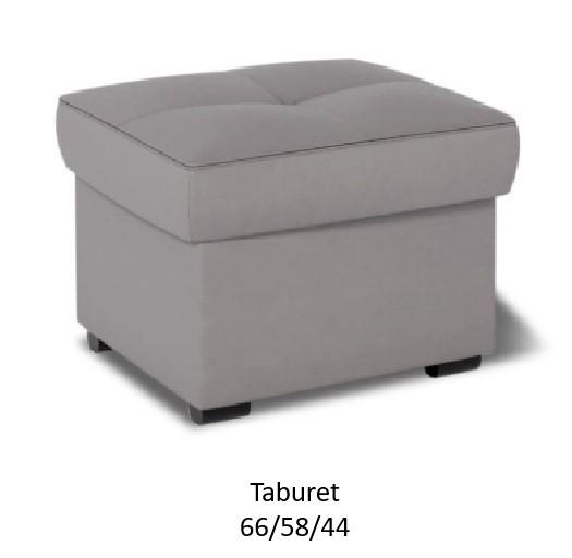 - Taburet: Pro ještě intenzivnější pocit pohody lze k sedačce Nevada dokoupit praktický taburet, který disponuje úložným prostorem. Šířka taburetu je 66 cm, výška 44 cm a hloubka 58 cm, výška nožiček je 5 cm.