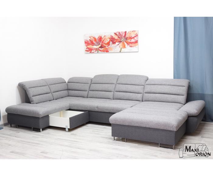 Moderní sedací souprava Roma má funkci rozkladu a je vhodná na občasné přespání. Zároveň oceníte i dva praktické úložné prostory. Základem výplně sedáku jsou vlnité pružiny a kvalitní PUR pěna. Sedací souprava je opatřena polohovatelnými záhlavníky, zároveň je možné polohovat i opěrky rukou. Opěrky zad jsou posuvné. Nožky jsou vyrobené z kovu. Sedací souprava má čalouněná záda a je vhodná do prostoru.