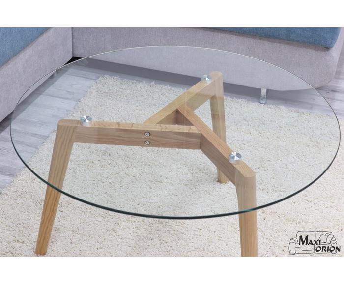 Elegantní kulatý konferenční stolek v moderním Scandinavian stylu. Deska stolku je vyrobena z kvalitního tvrzeného skla, nohy stolu ze dřeva v barvě dub. Svou jednoduchostí zaujme i nejnáročnější zákazníky.