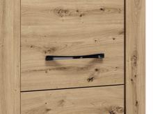 Design skříně je inspirován přírodou, konkrétně kresbou dřeva se suky, a její dekor v teplém odstínu dubu Artisan vytváří teplou a příjemnou atmosféru v místnosti.