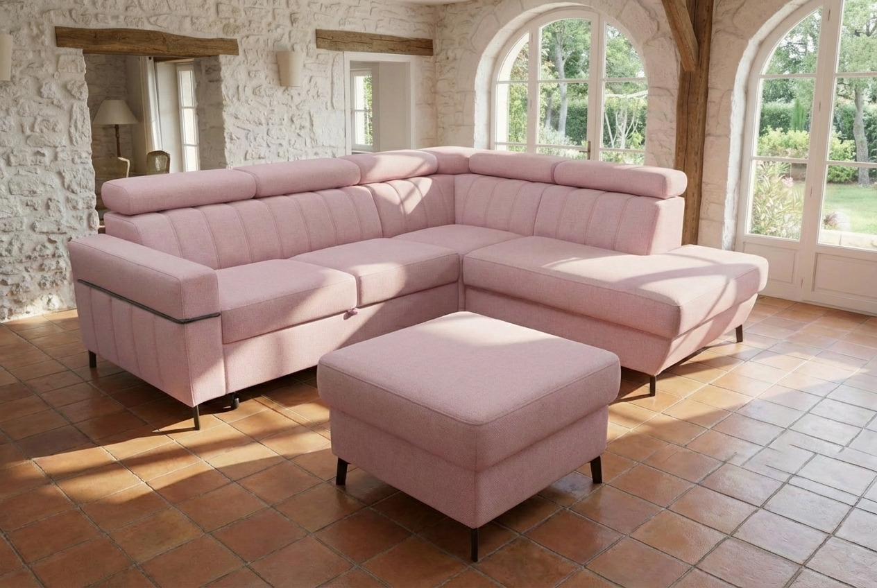 Taburet se skvěle kombinuje se sedačkou ve stejném stylu a vytváří moderní, čistý a luxusní celek.