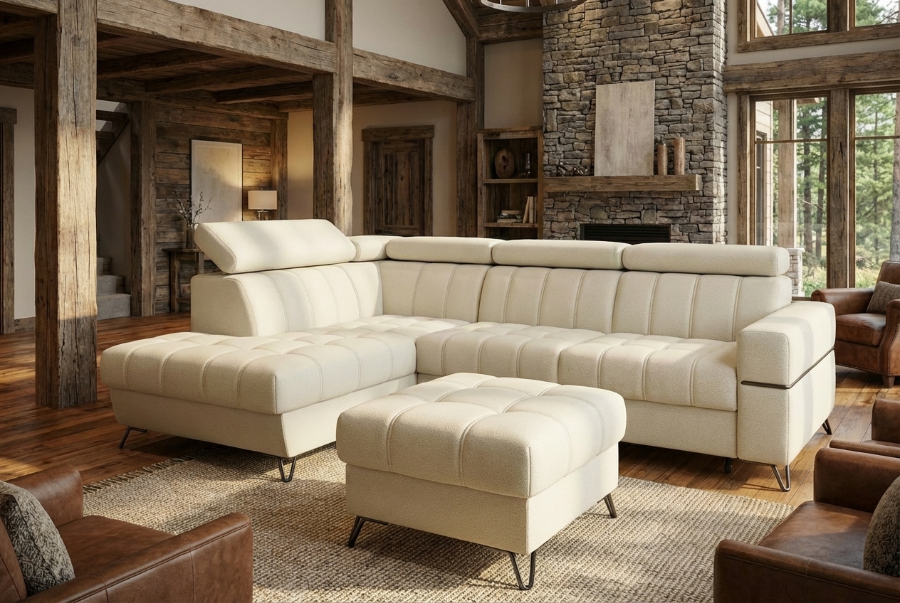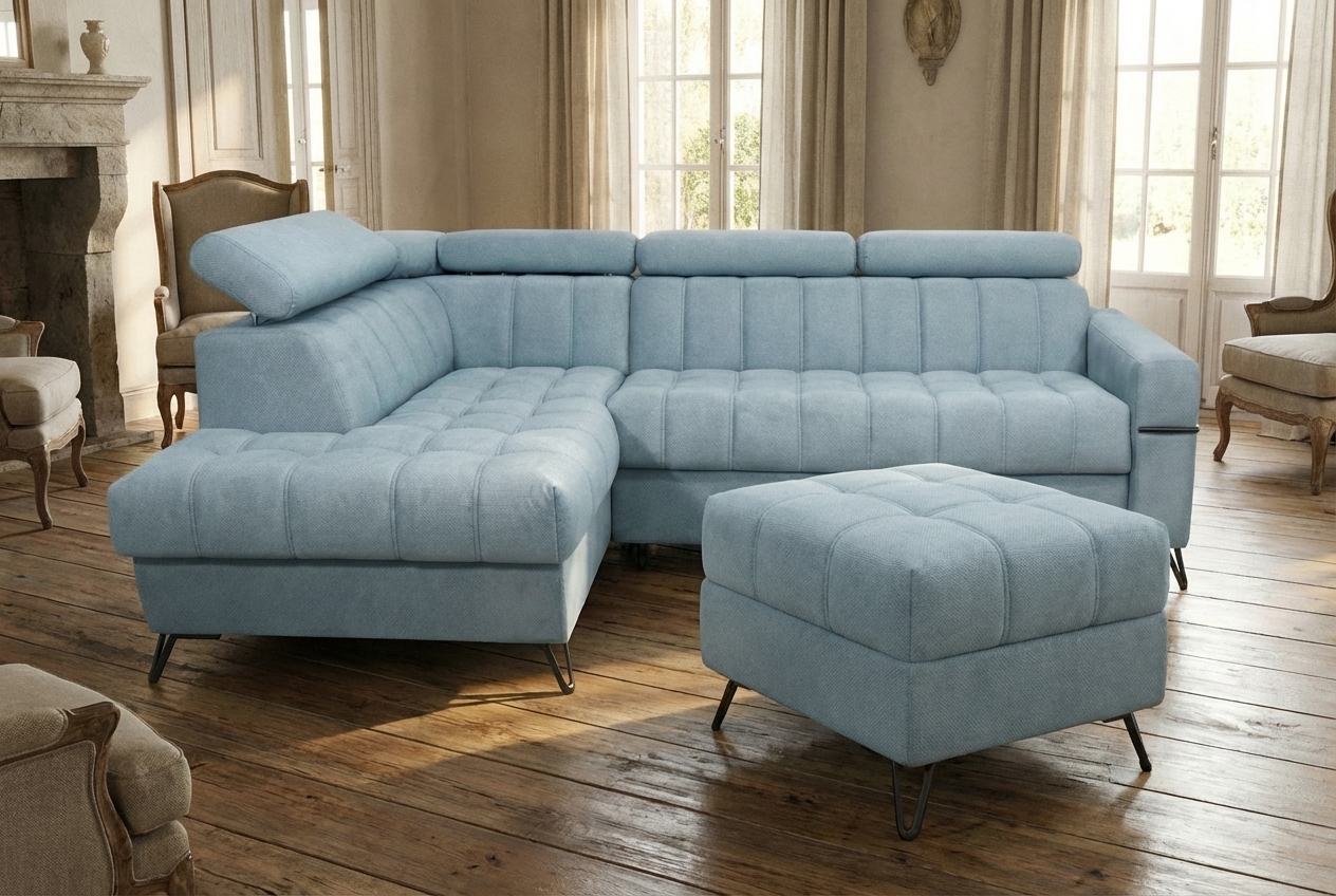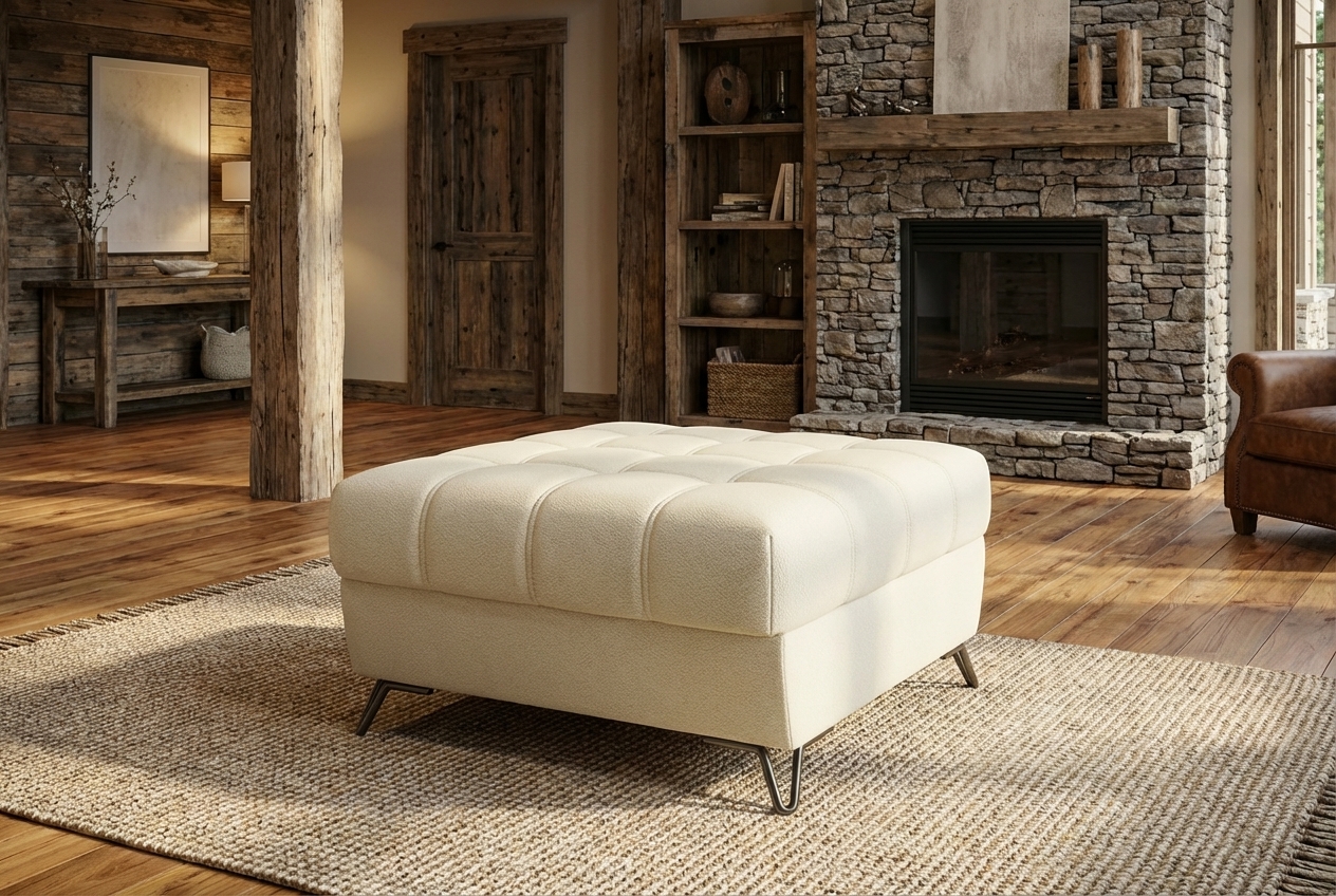 Taburet se skvěle kombinuje se sedačkou ve stejném stylu a vytváří moderní, čistý a luxusní celek.