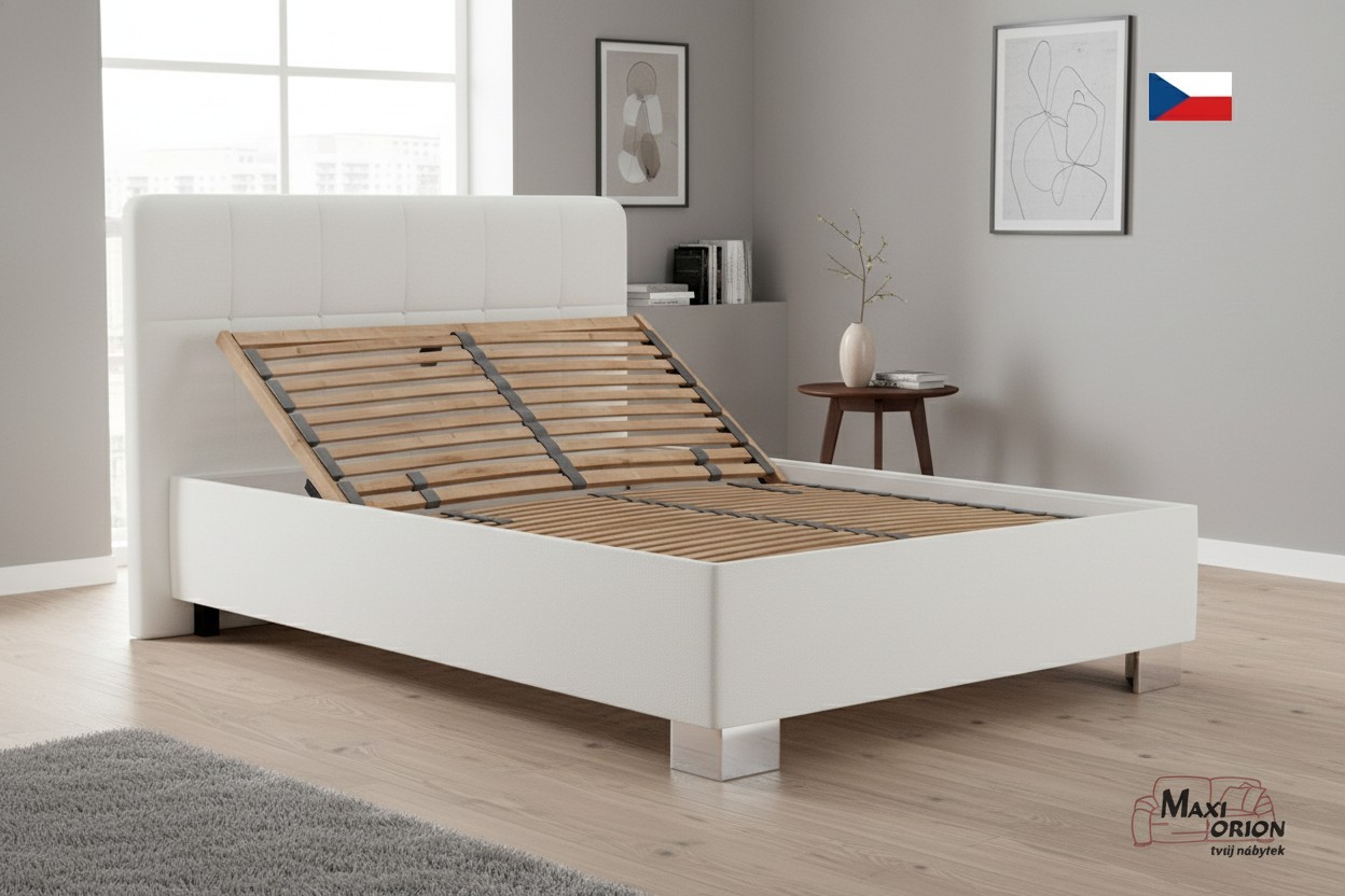 - postel je očalouněna kvalitní umělou kůží - koženkou, bílá