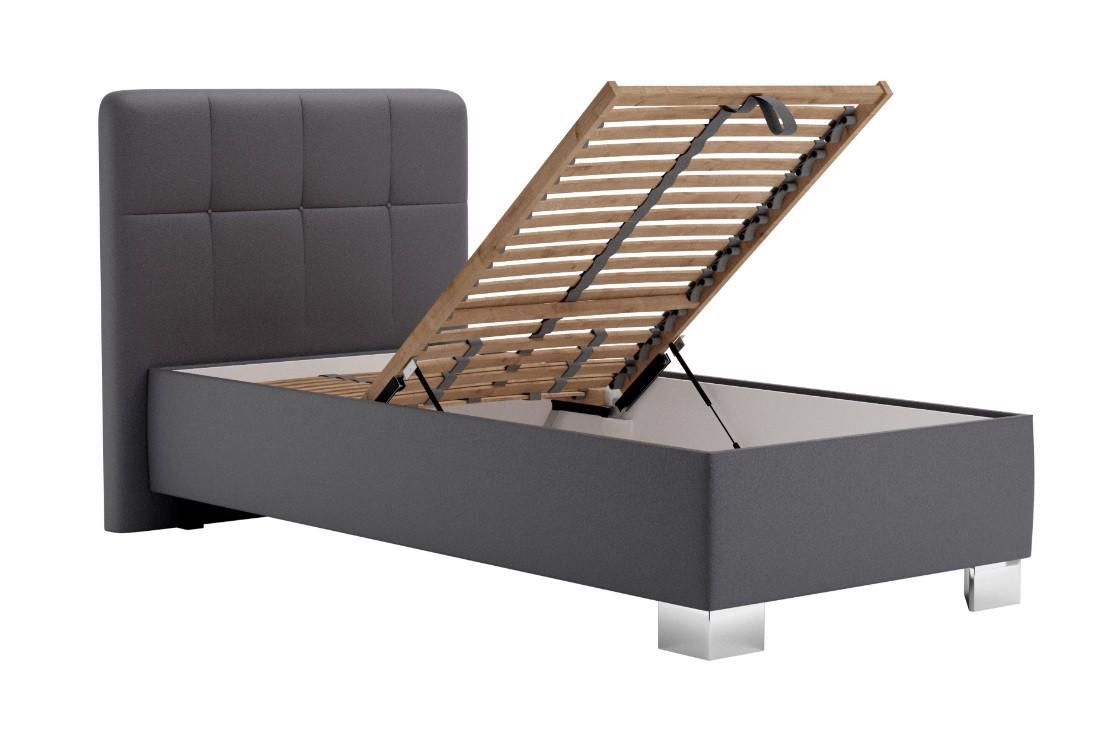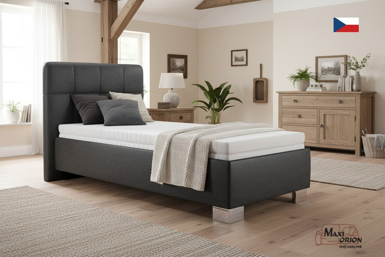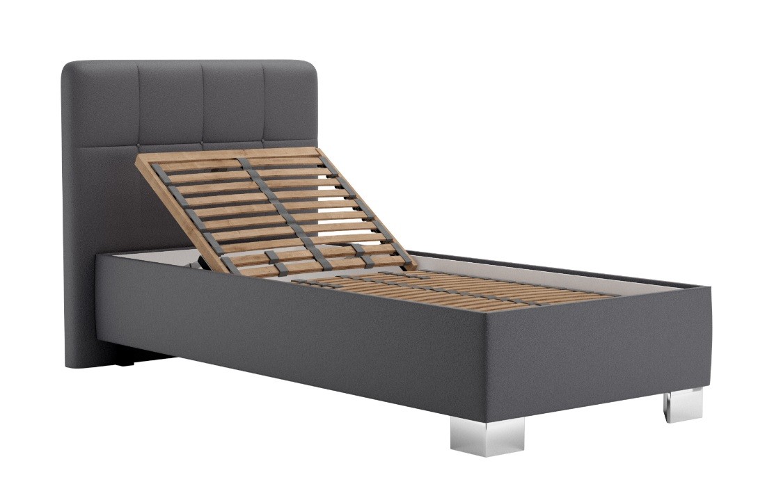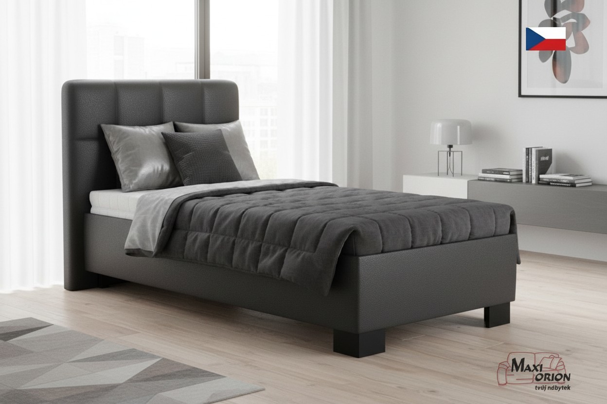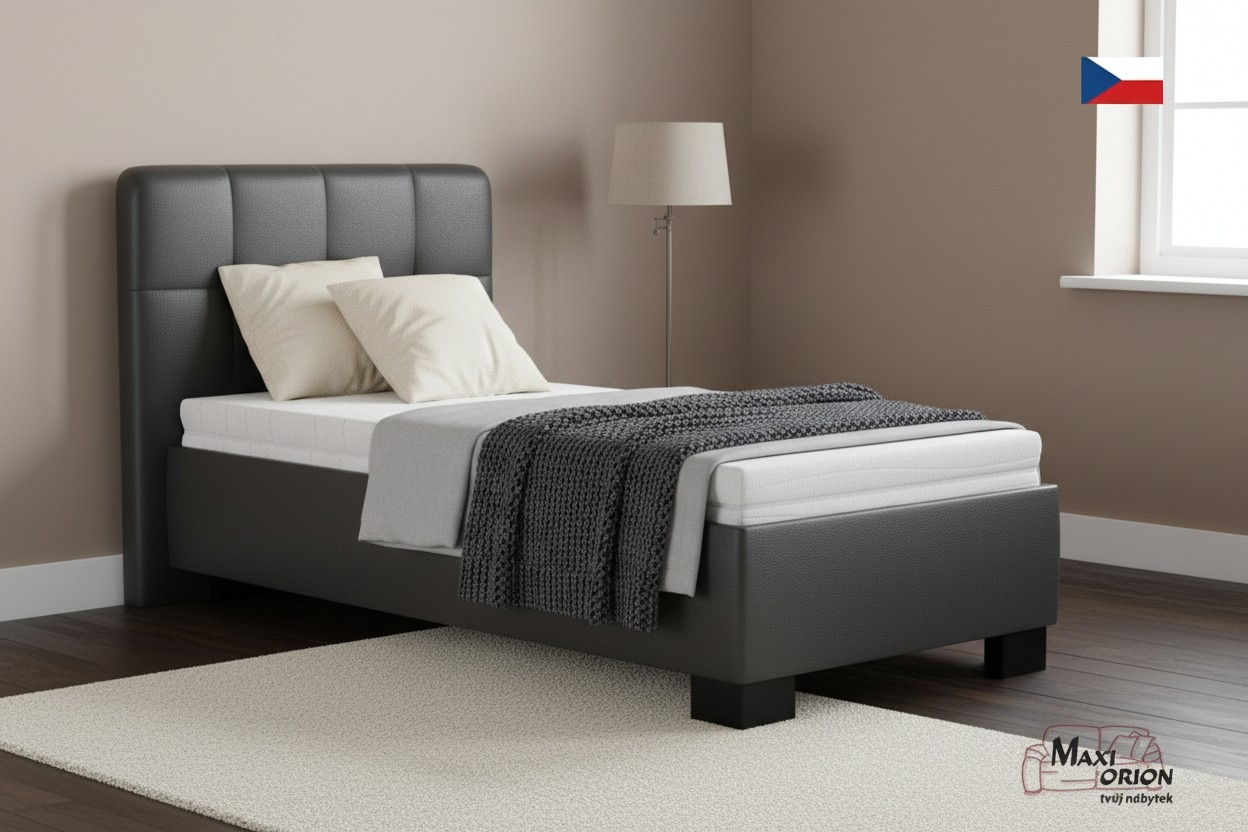 - postel je očalouněna kvalitní umělou kůží - koženkou, tmavě šedá
