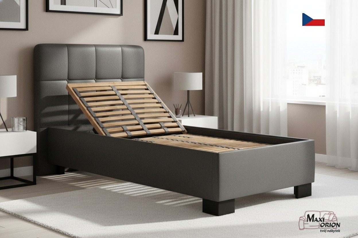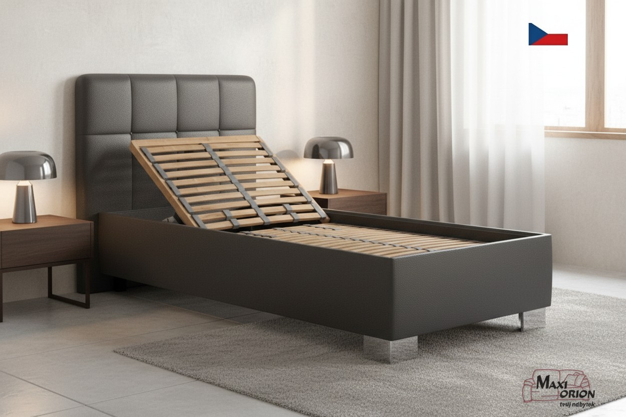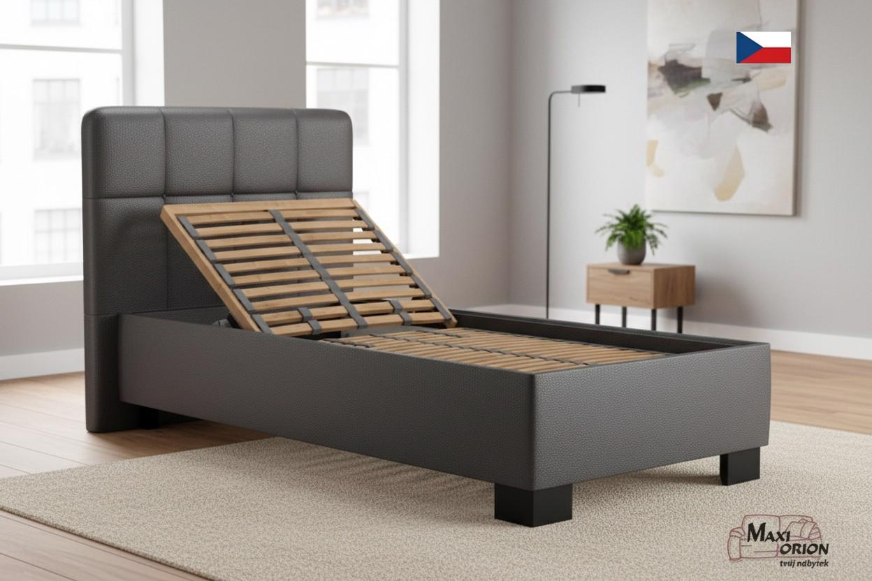 - postel je očalouněna kvalitní umělou kůží - koženkou, tmavě šedá