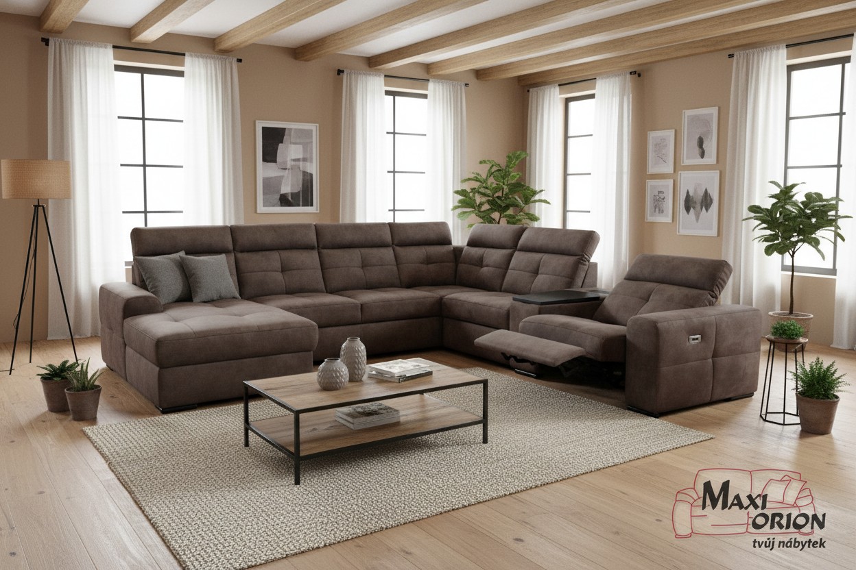 Velká rohová sedací souprava do U s elektrickým křeslem Kanton - hnědá