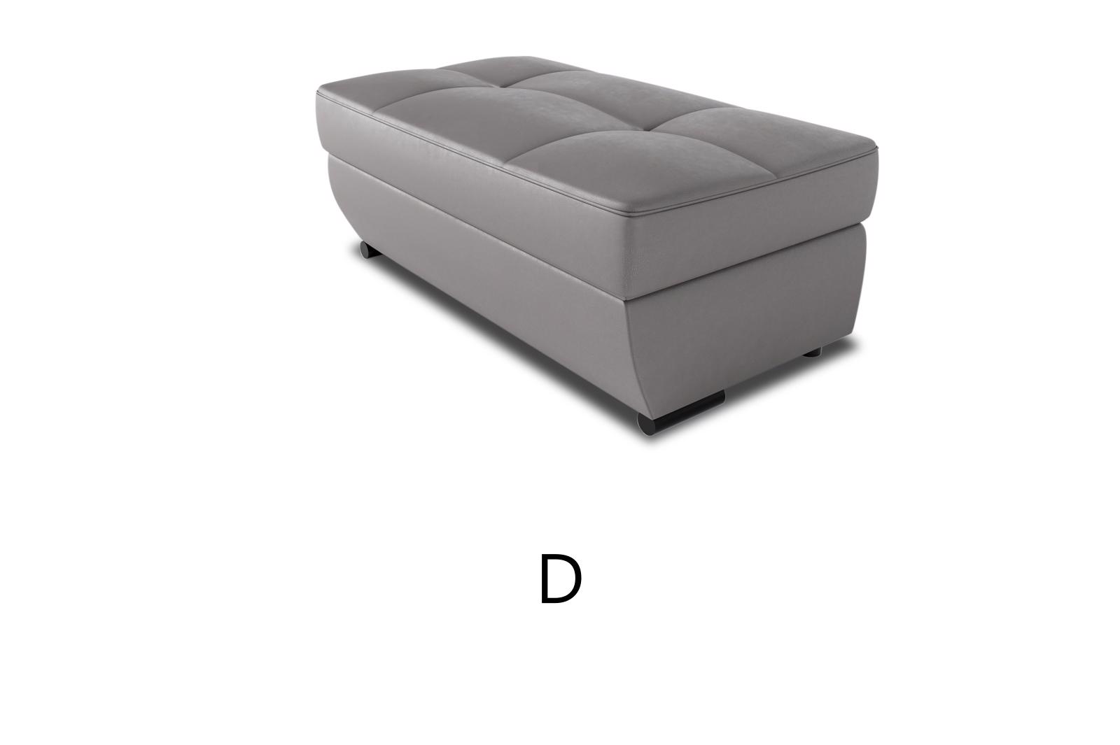 Kompletní sestava obsahuje: • Dvojsedák s rozkladem 2F na příležitostné spaní - typ rozkladu "delfín" • Dvojsedák s úložným prostorem - praktické řešení pro ukládání • Jednosedák a Ukončovací taburet - dává se místo ukončení područkou