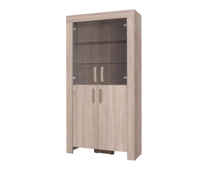 Vitrína CEZAR je rozdělena na dvě části - vrchní část je prosklená a obsahuje tři skleněné police, spodní část má plná dvířka a 2 police. CEZAR je moderní a víceúčelový nábytek.