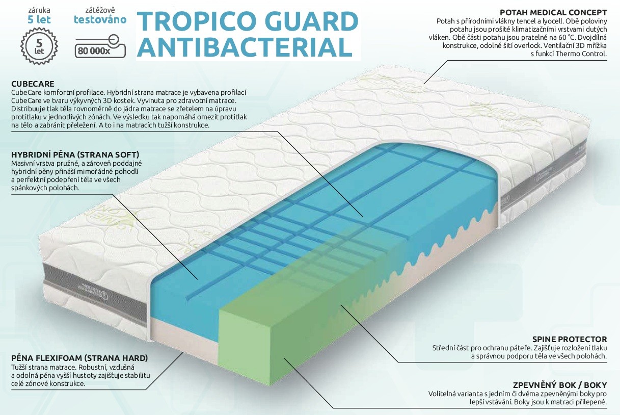 Zdravotní matrace Tropico Guard Antibacterial 20 cm, 160x200 cm