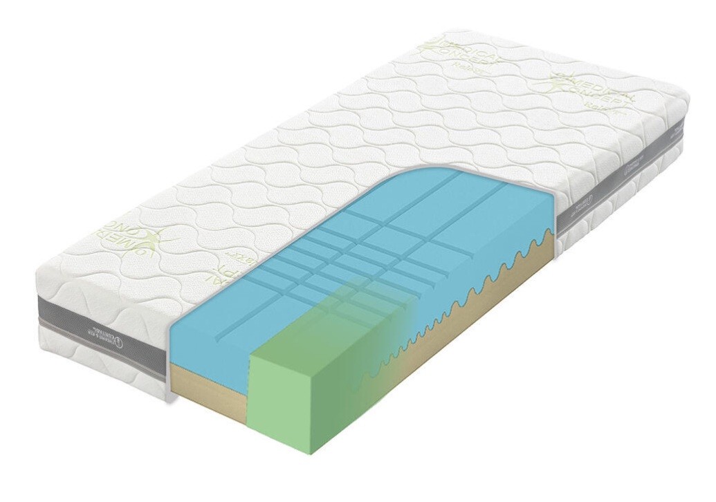 - Thermo Control: Středová 3D mřížka funguje jako ventilace, která odvádí vlhkost a brání množení roztočů.